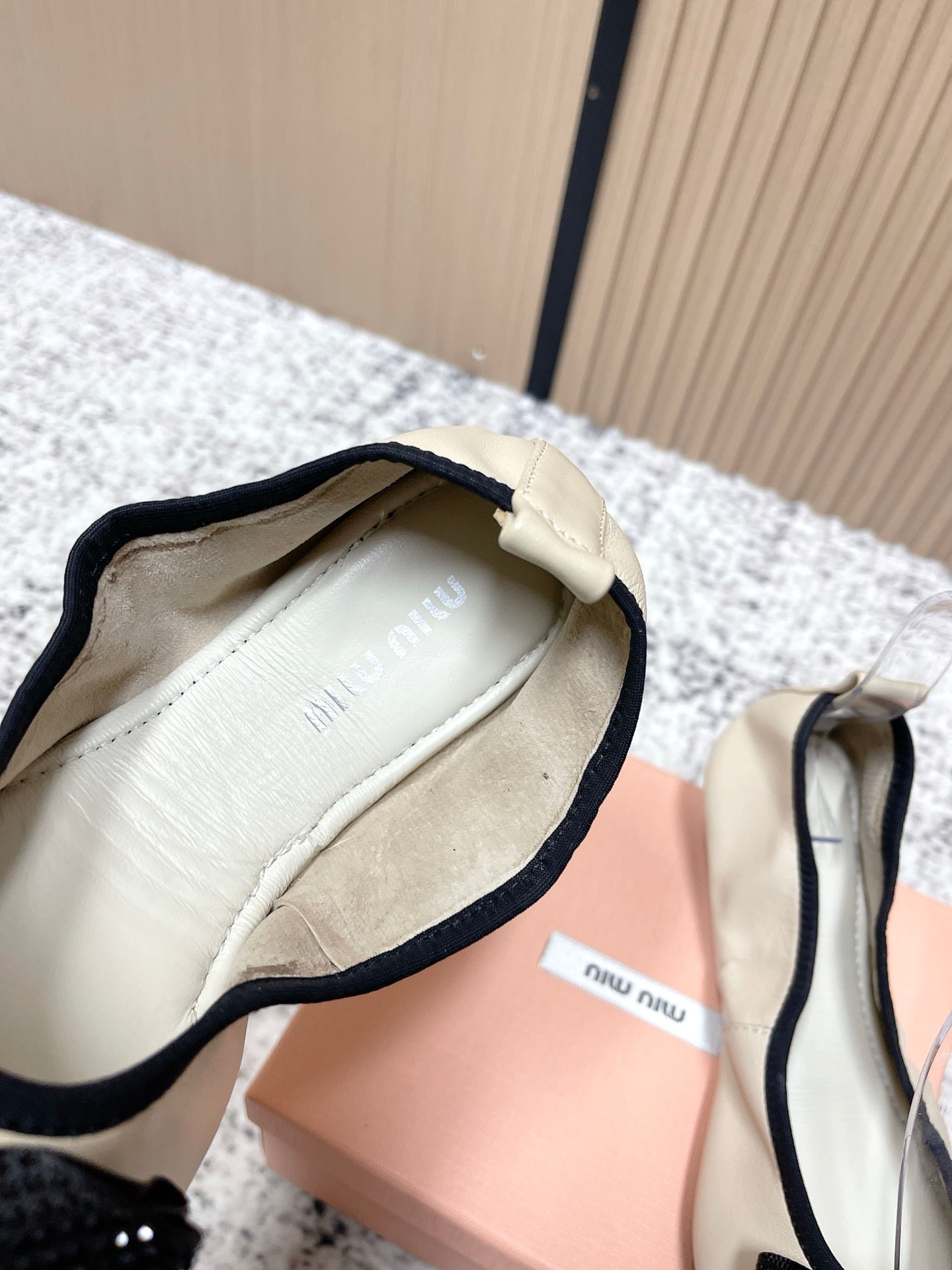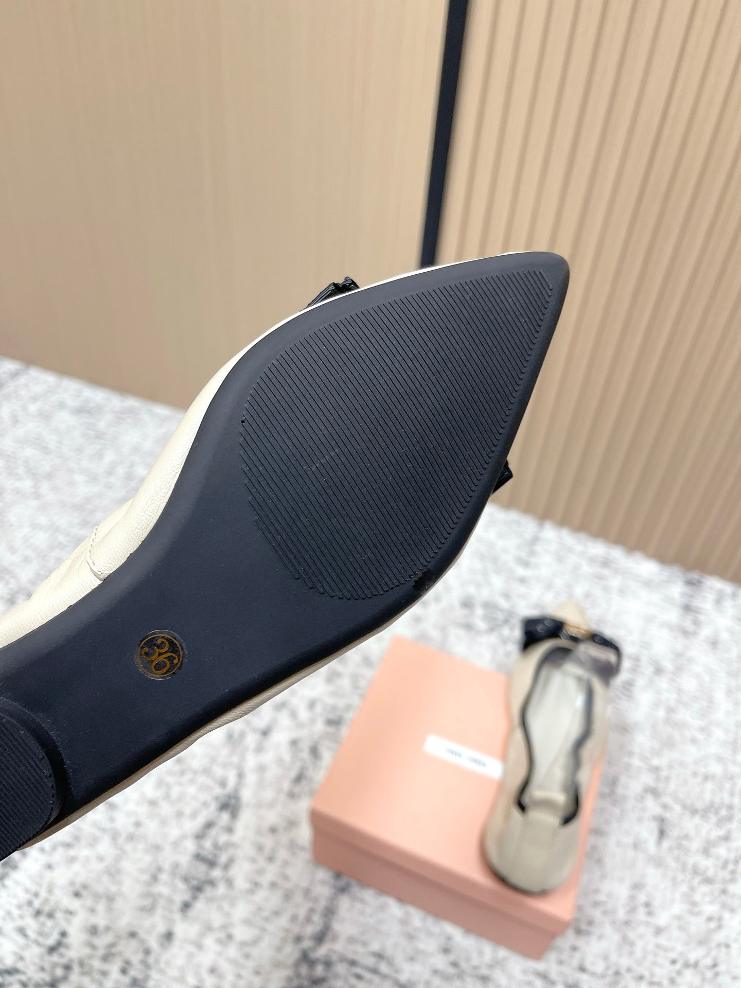 Miu Pointed-Toe Ballet Flats Ivory Sheepskin 591568