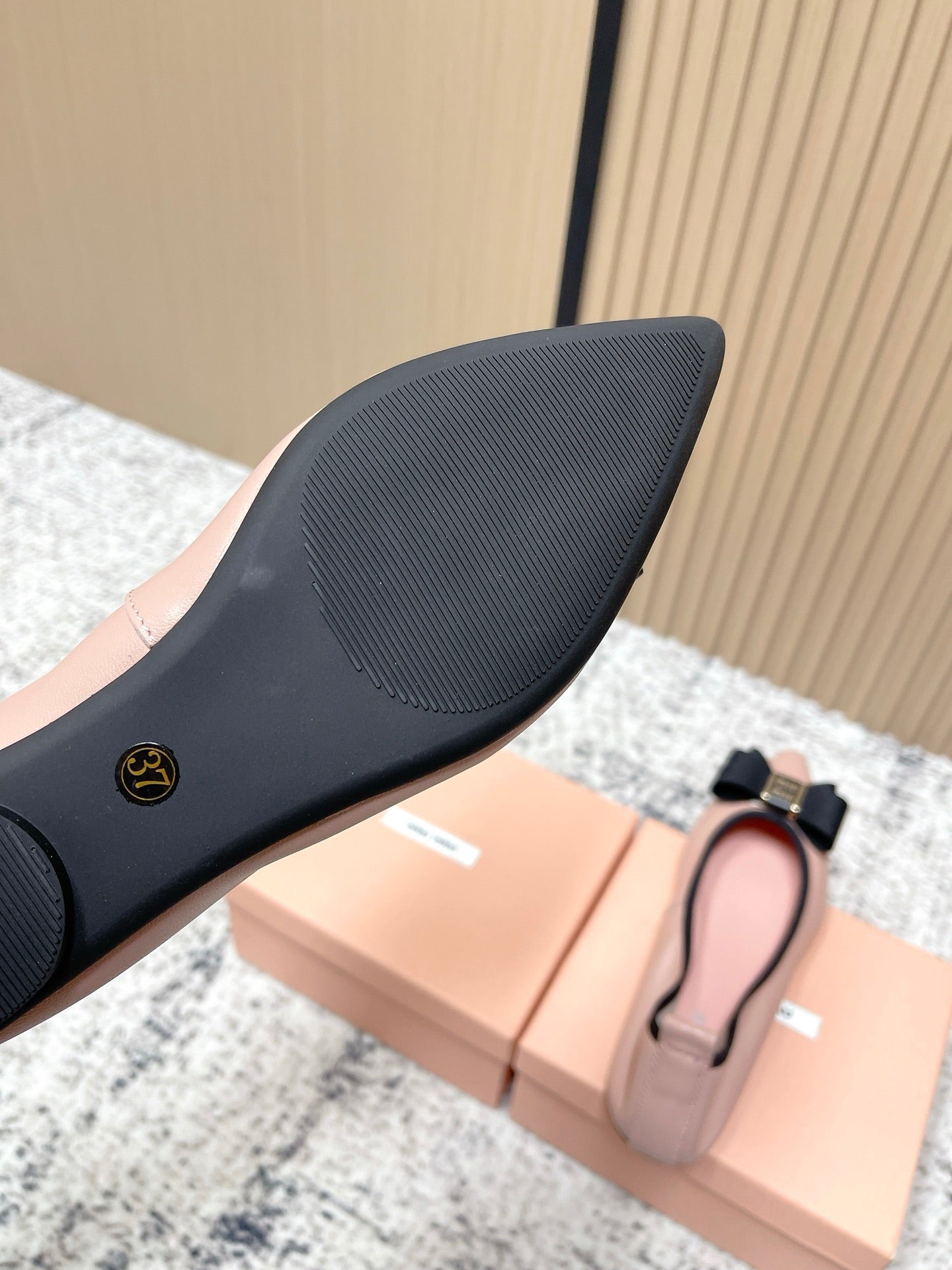 Miu Pointed-Toe Ballet Flats Light Pink Sheepskin 591565