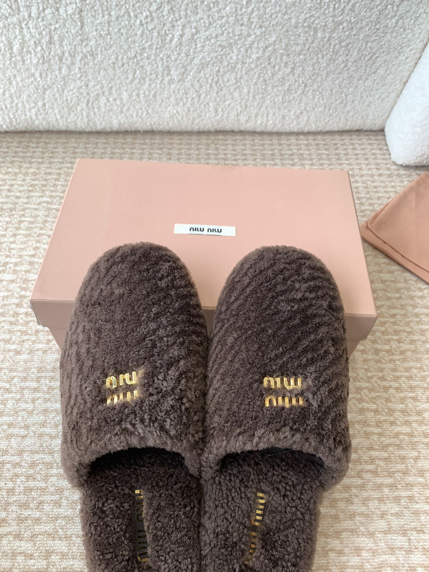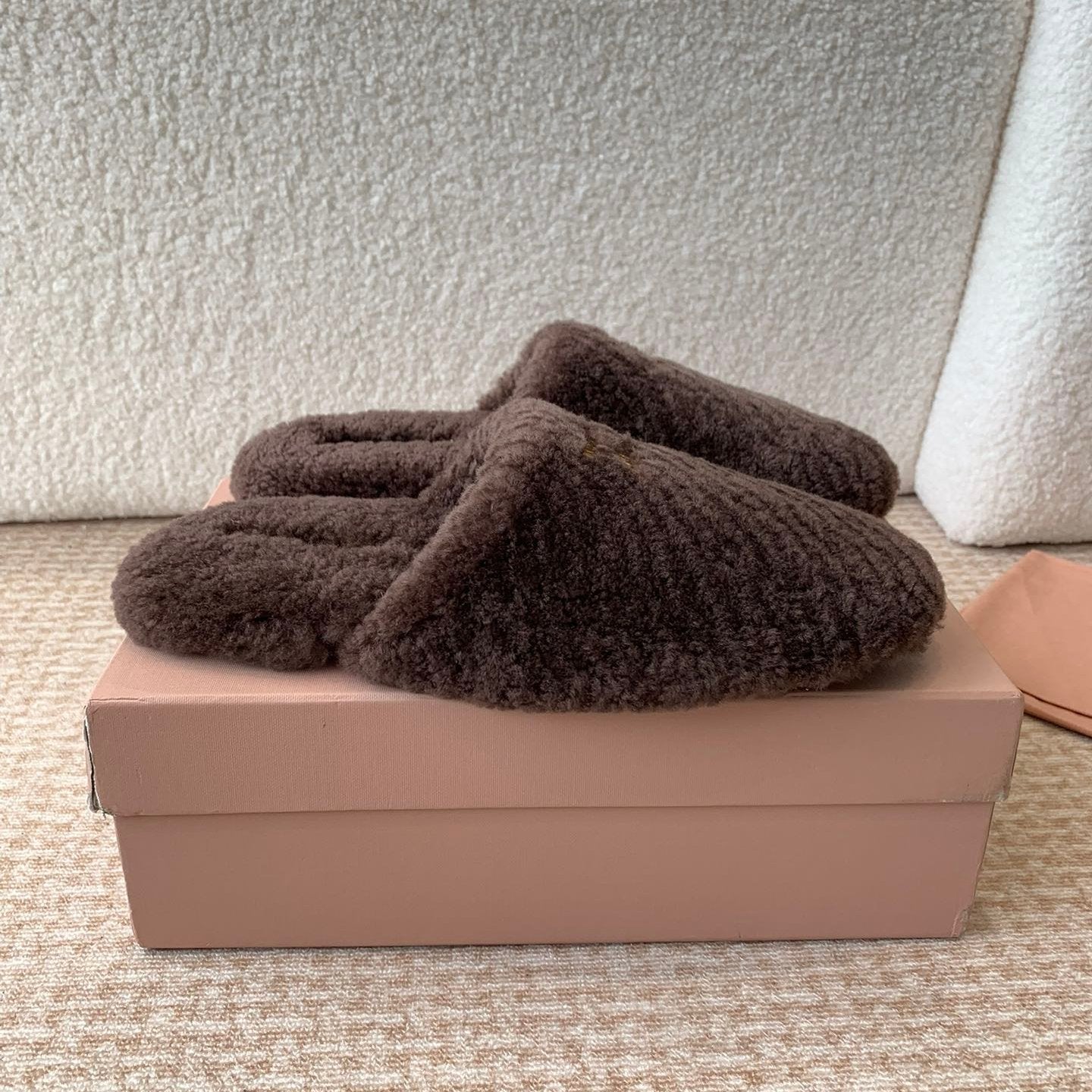 Miu Slippers Brown Earth Wool