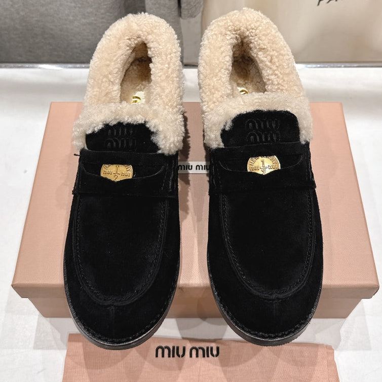 MiuMiu 25 Fur Loafer Black mix Beige Suede 535598