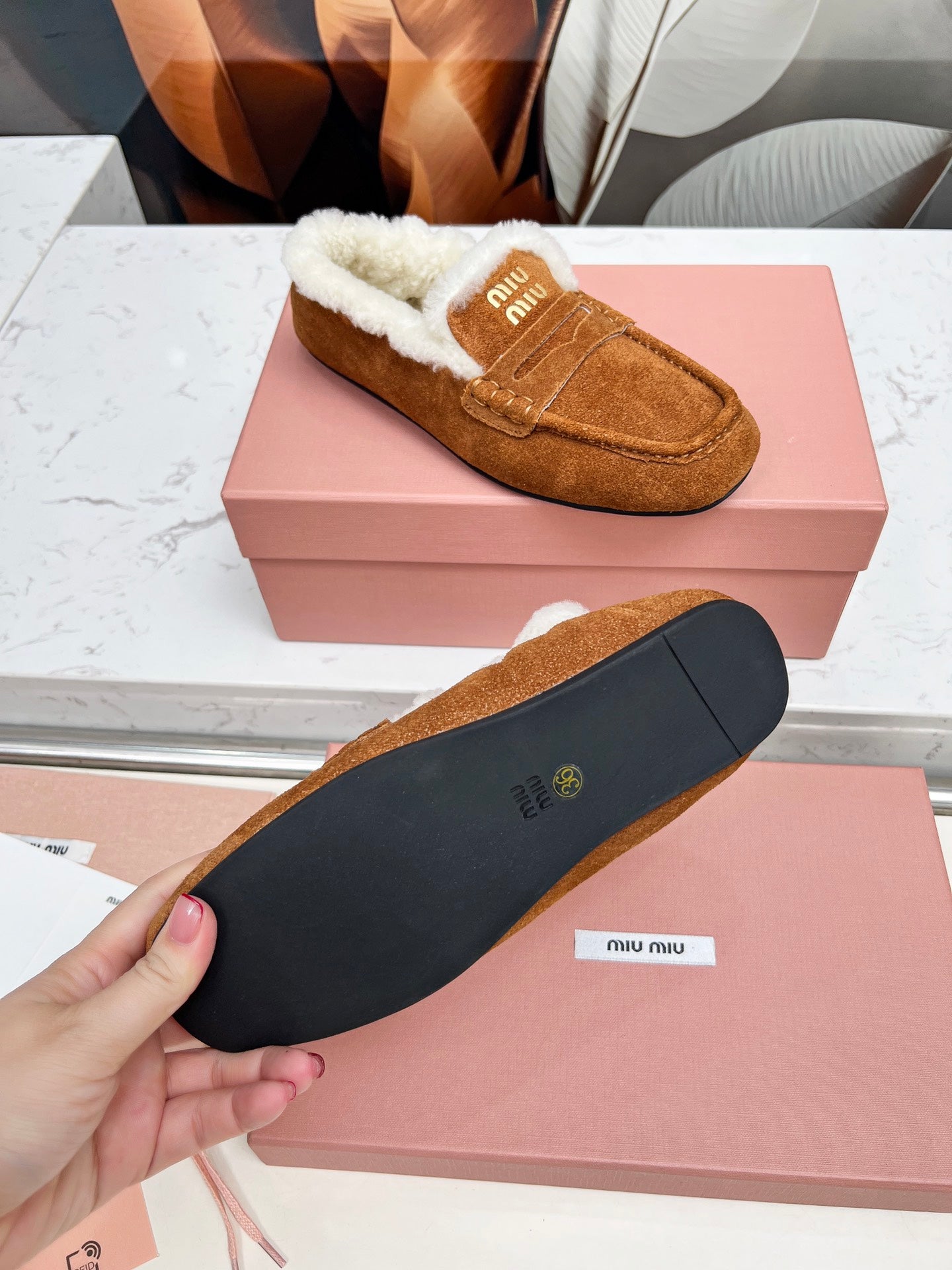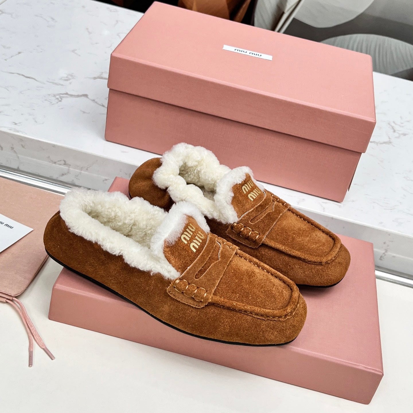 Miumiu 25 Loafer Brown White Cowhide Wool 413755
