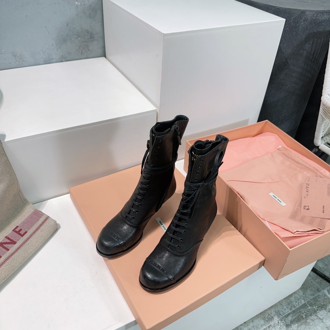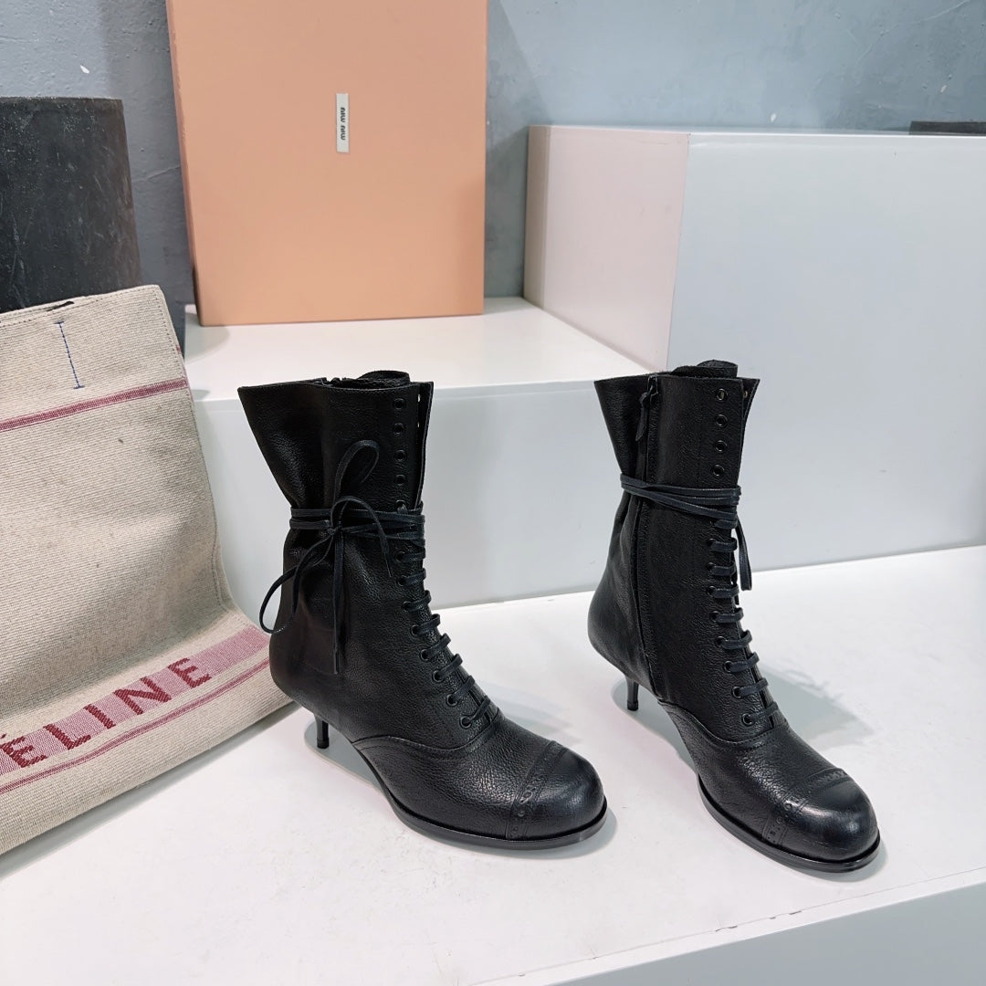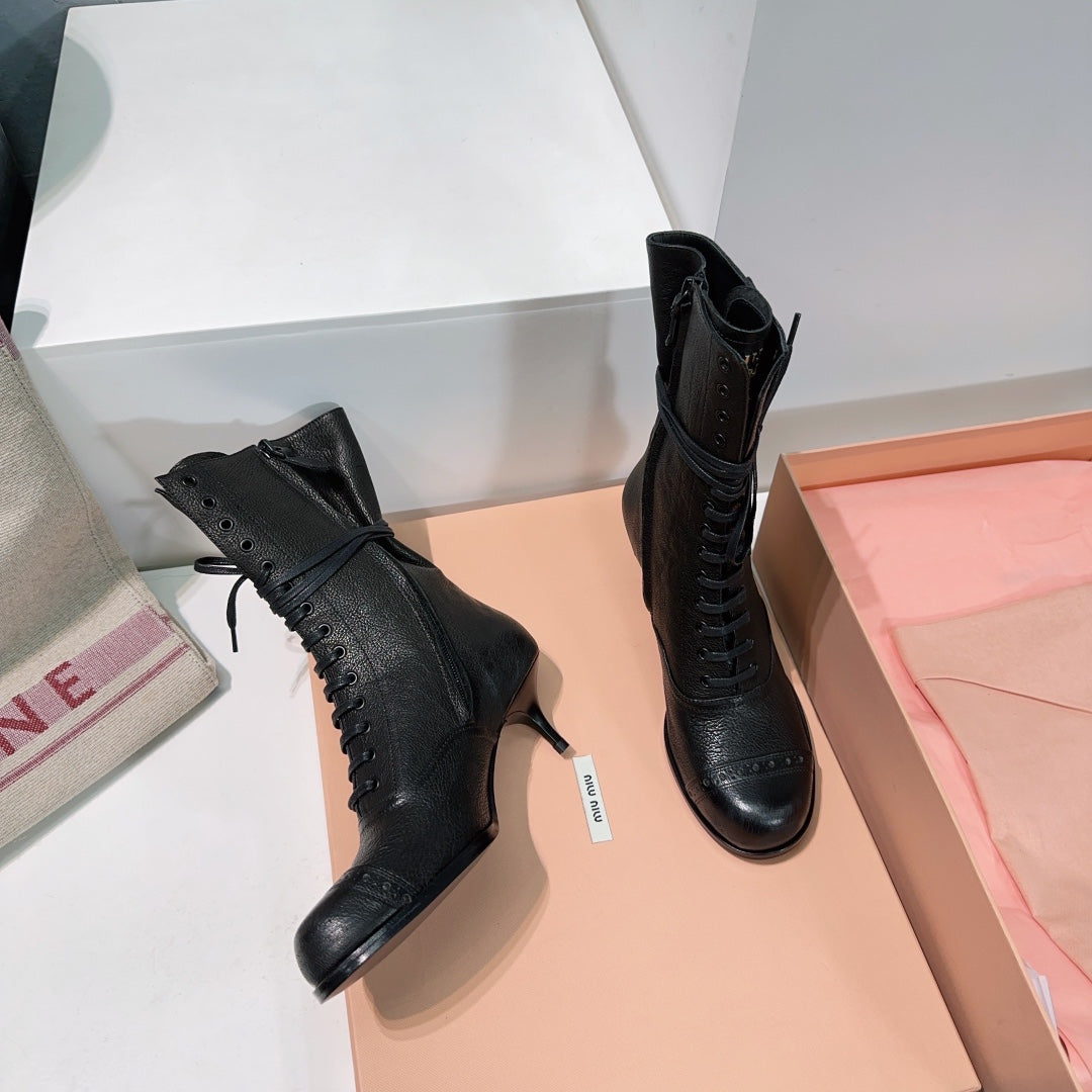 Miumiu 25 Low-heeled Ankle Boot Black Cowhide 511261
