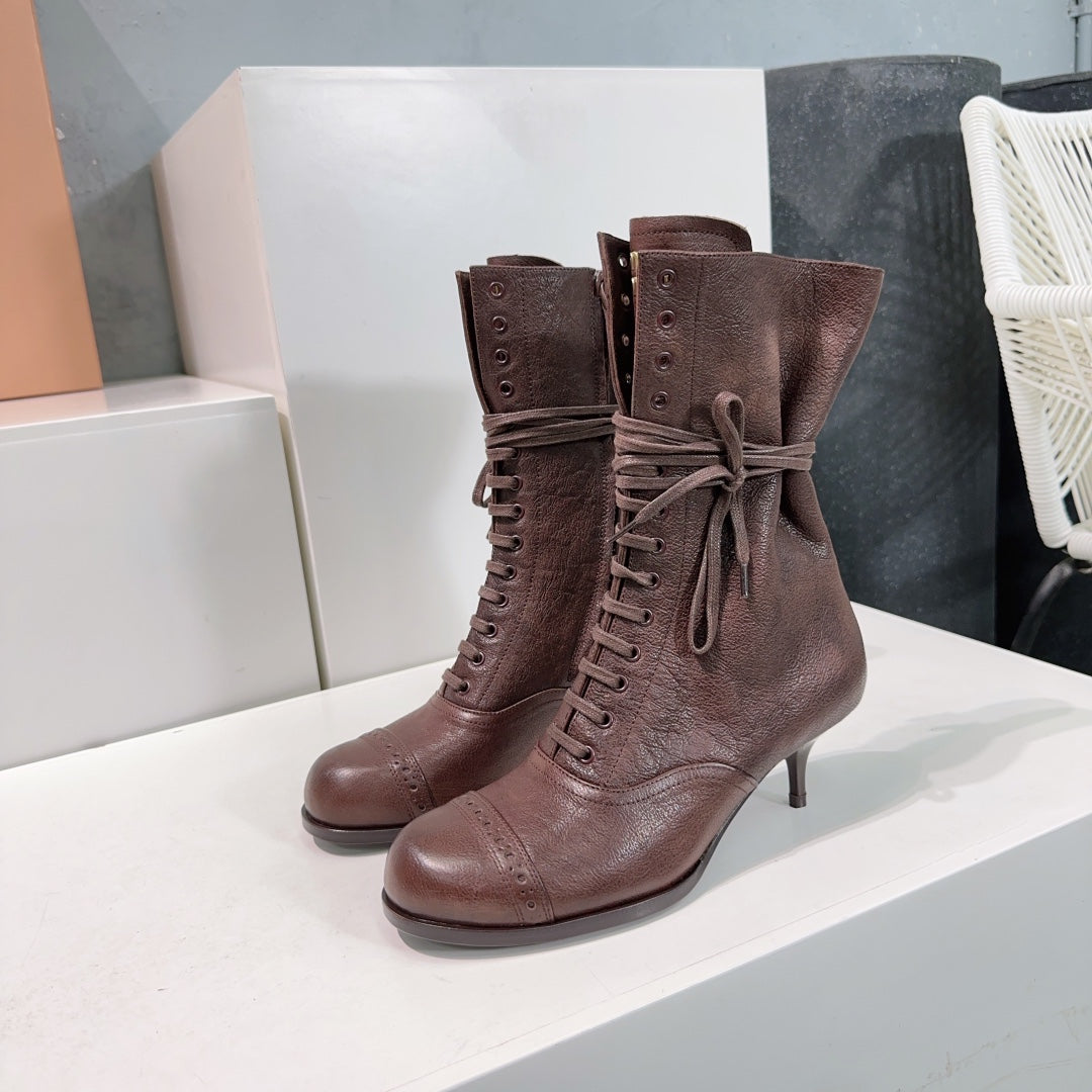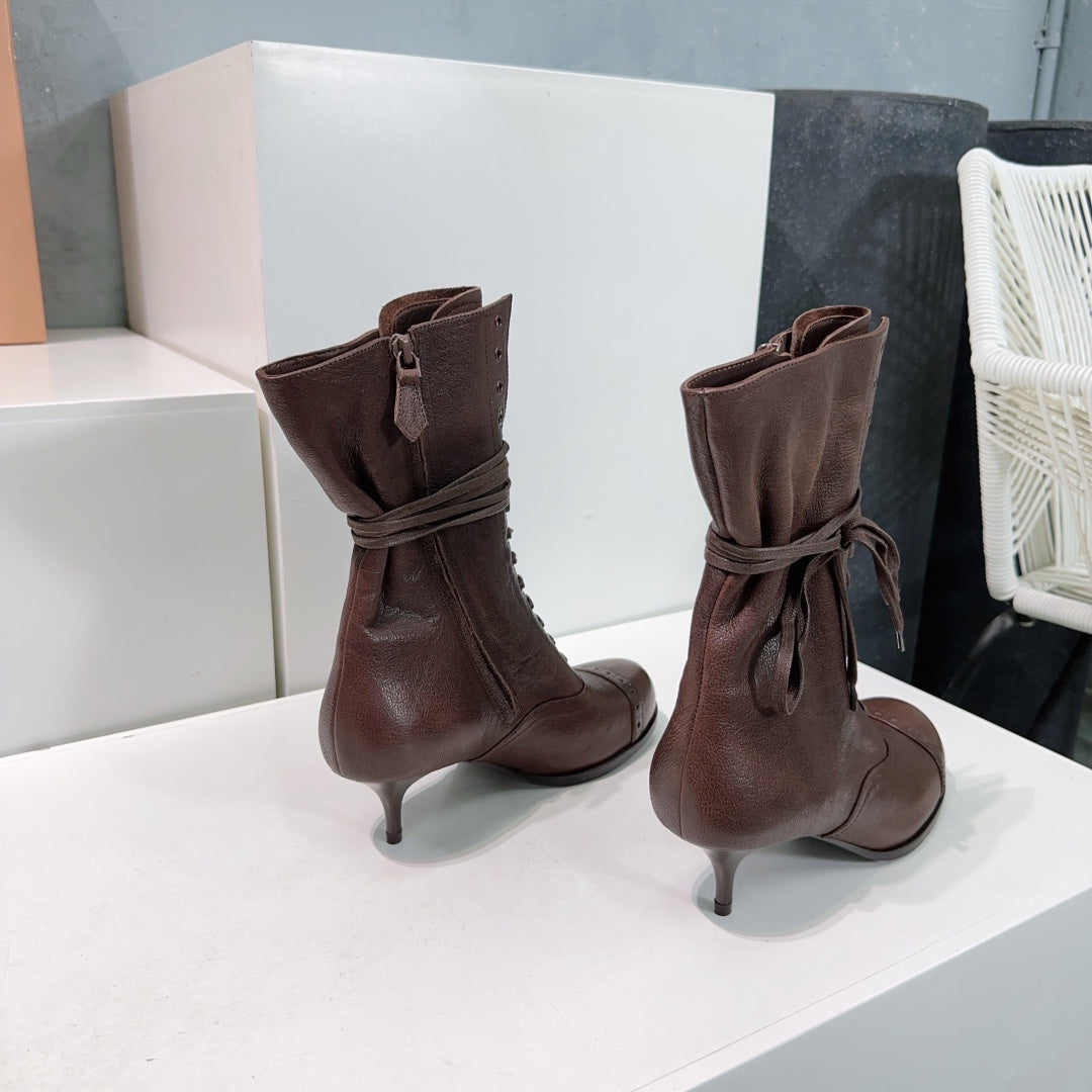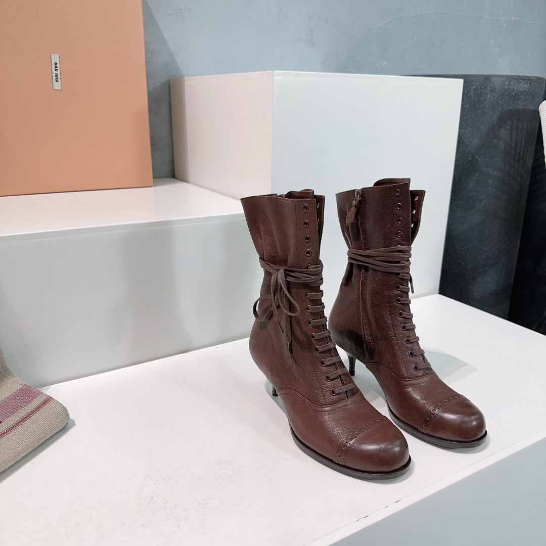 Miumiu 25 Low-heeled Ankle Boot Chocolate Brown Cowhide 511262