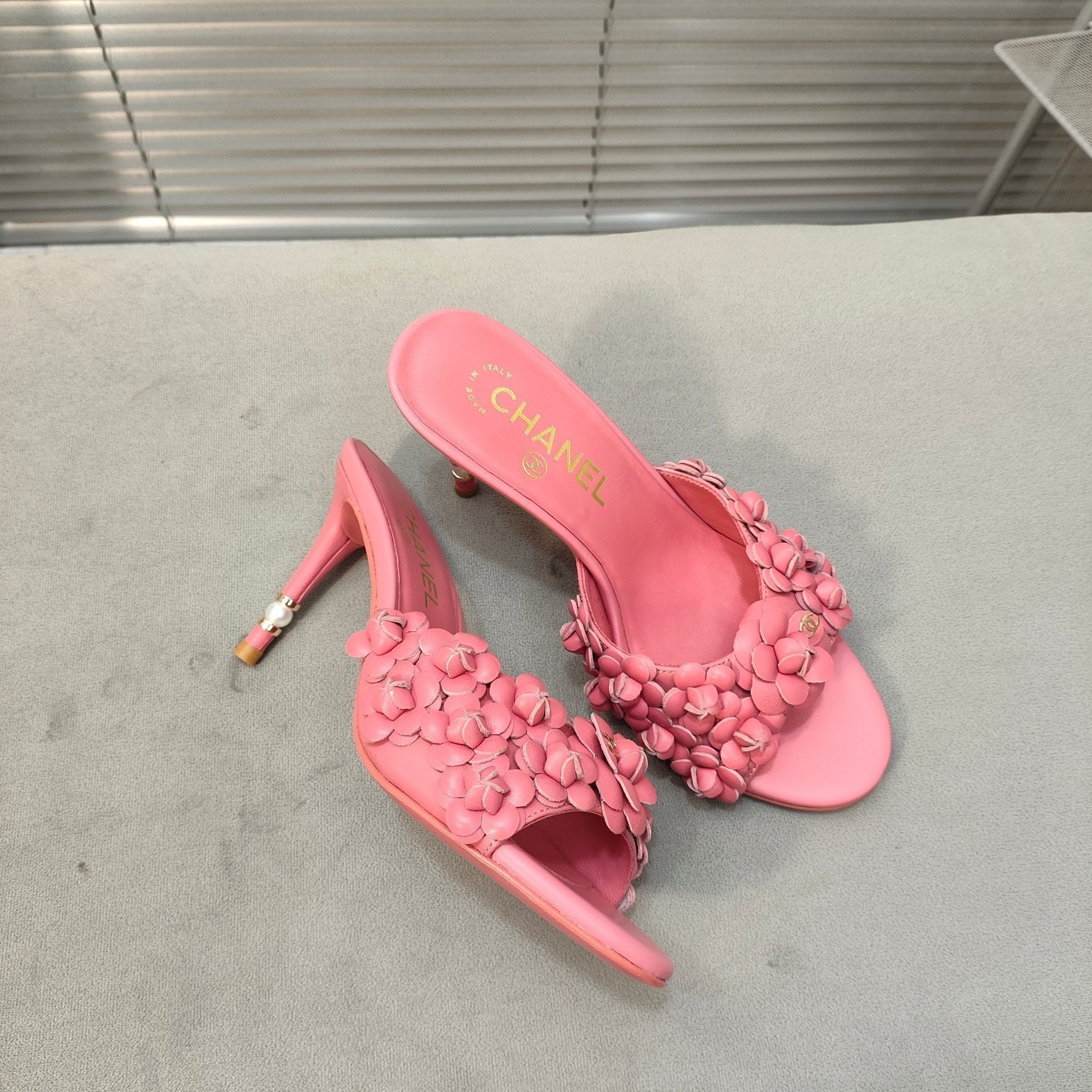 mule sandal 80 rose pink calfskin flower