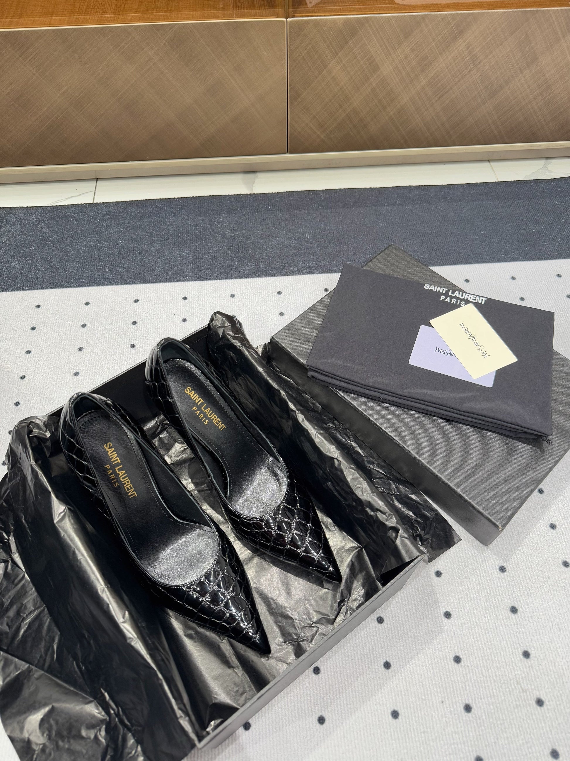 NORMA PUMPS IN BLACK CROCODILE PATTERN SHEEPSKIN