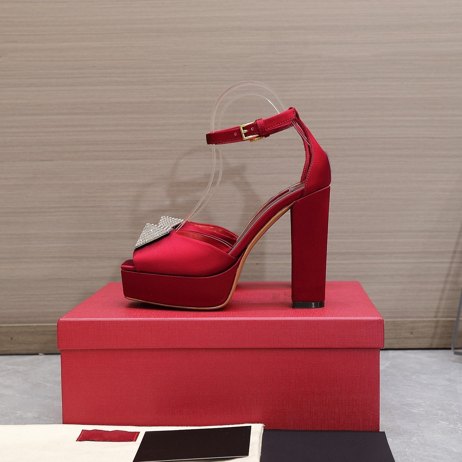 Open Toe Pump With One Stud Diamond Patent Red Leather 130MM