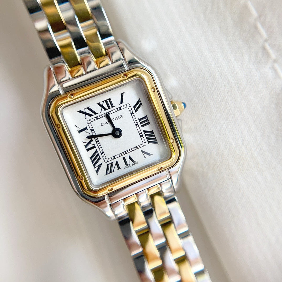 Panthere 22mm Yellow Gold Silver Double Chain 44cm