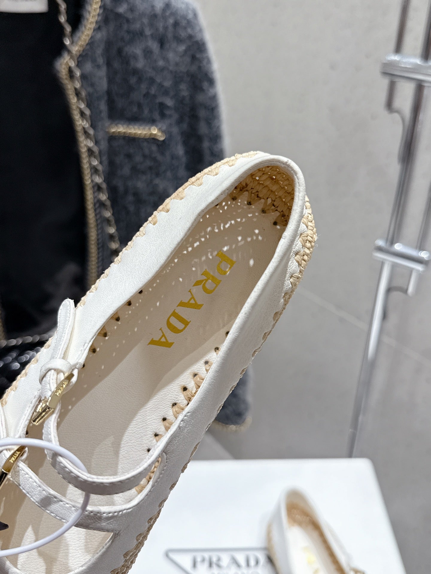 Pra 2025 Ballet Flat White Beige Cowhide Woven 554288
