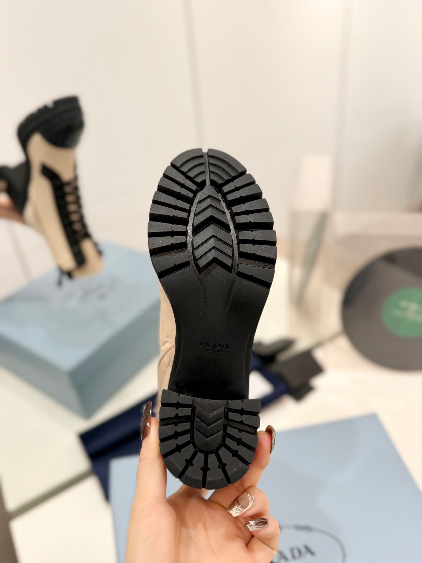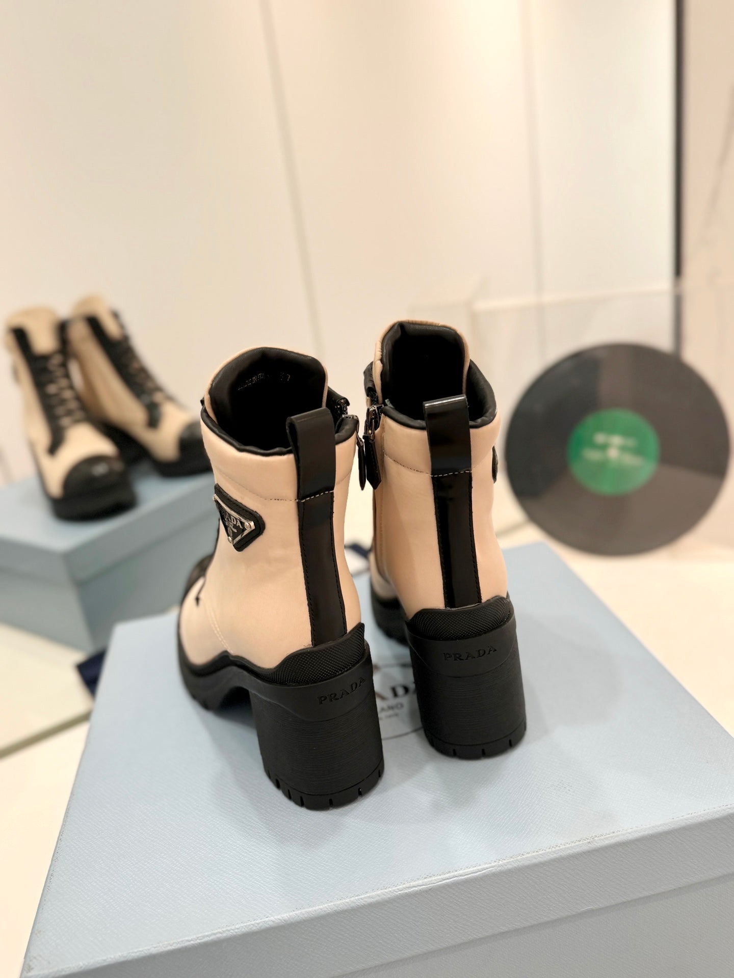 PRA BRUSHED LEATHER AND RE-NYLON LACED BOOTIES PASTEL PINK