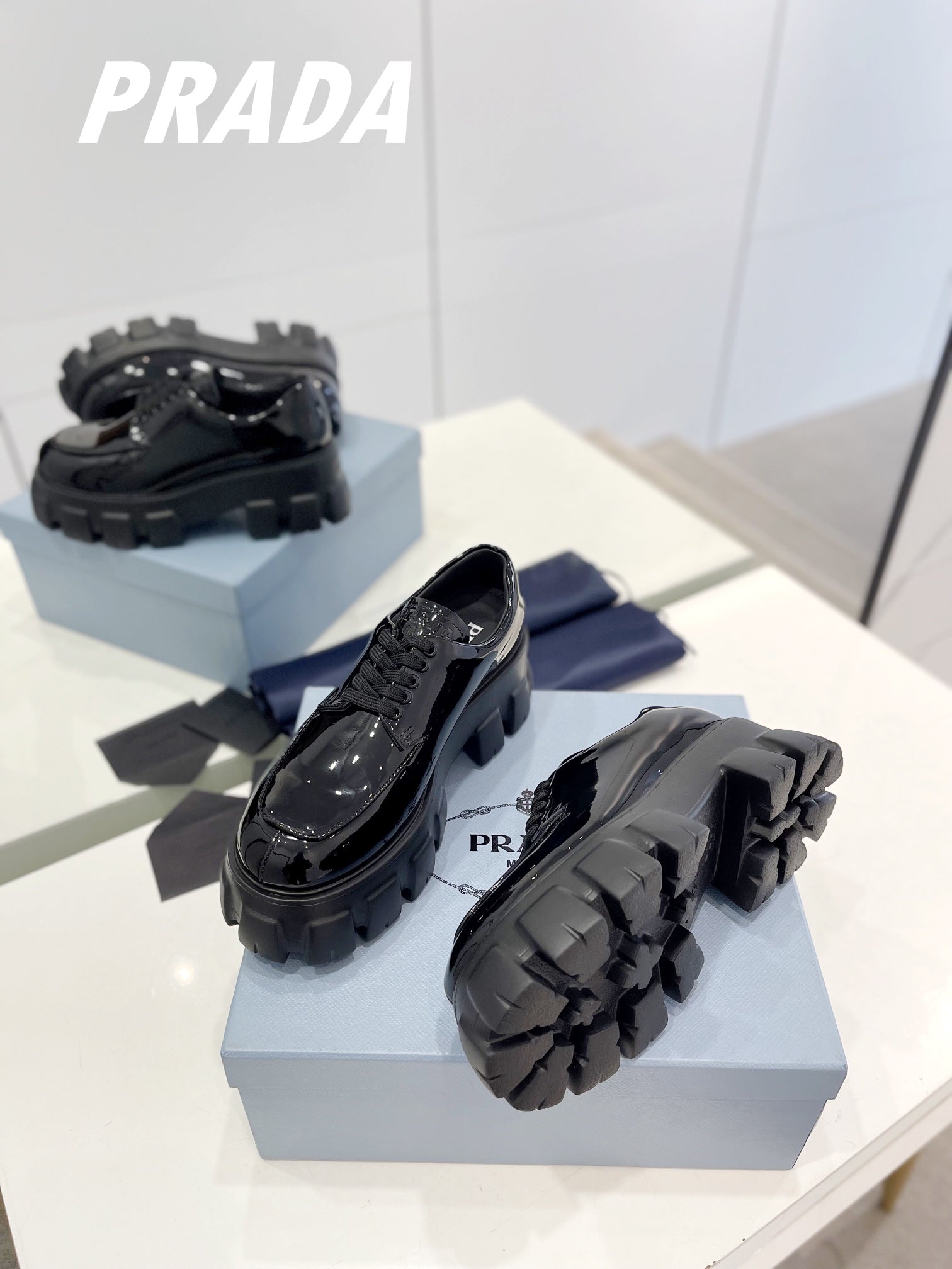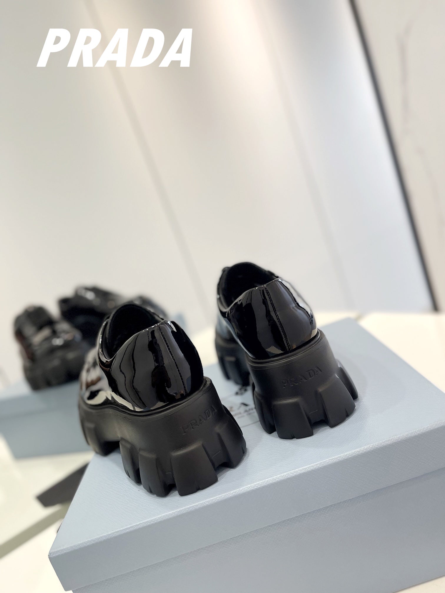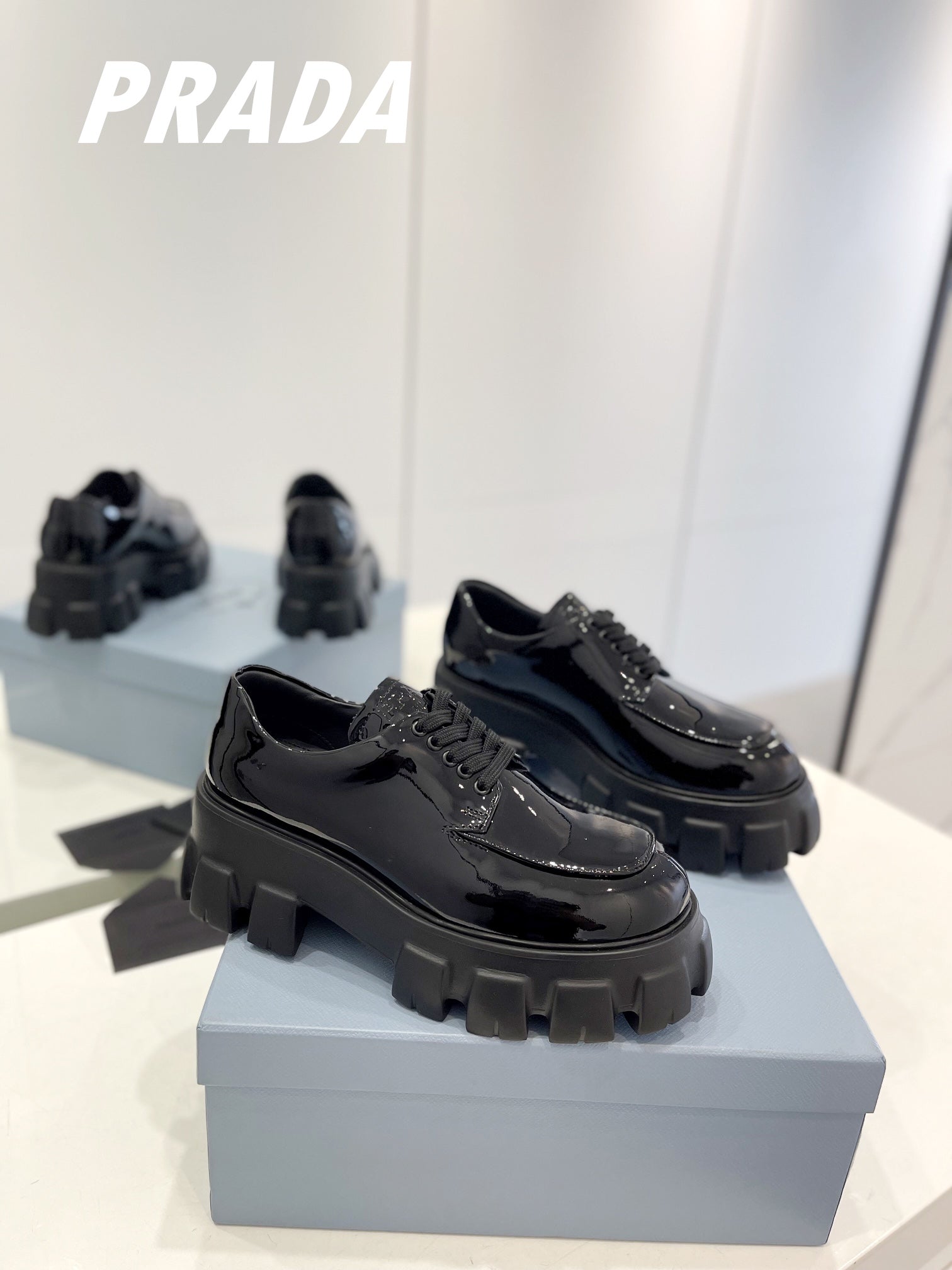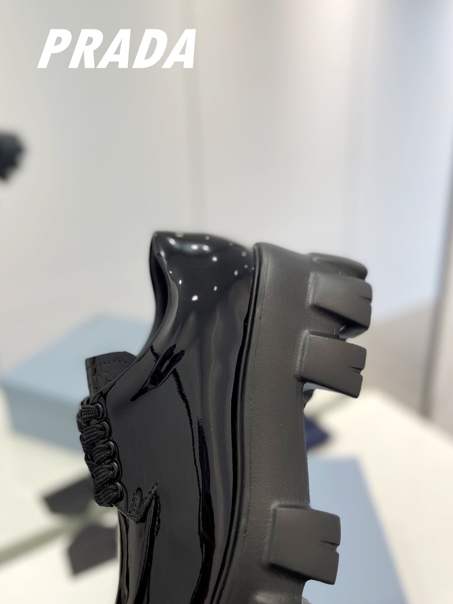 PRA BRUSHED LEATHER MONOLITH LACE-UP LOAFERS GLOSSY BLACK