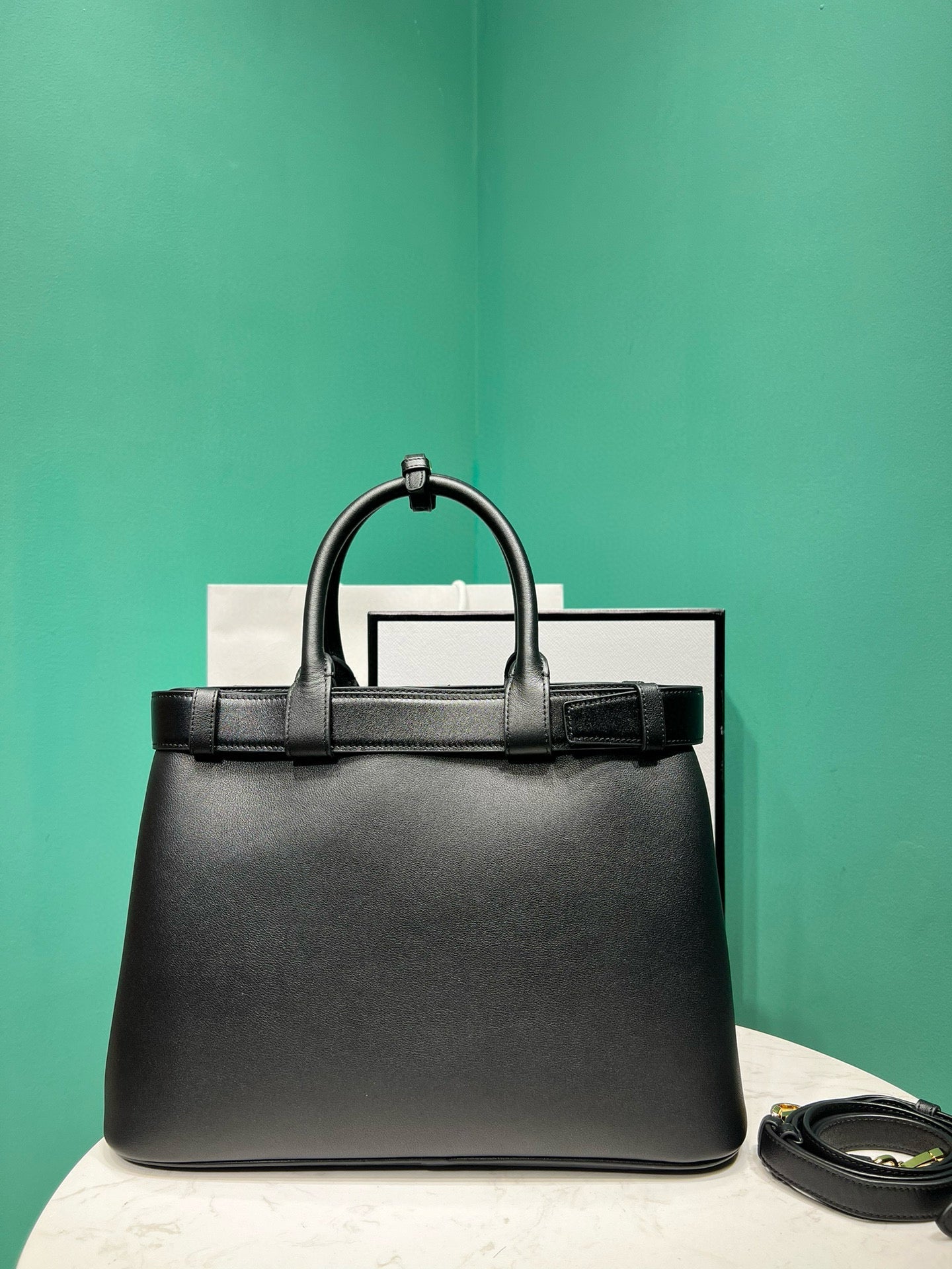 pra buckle medium 35cm black calfskin gold hardware