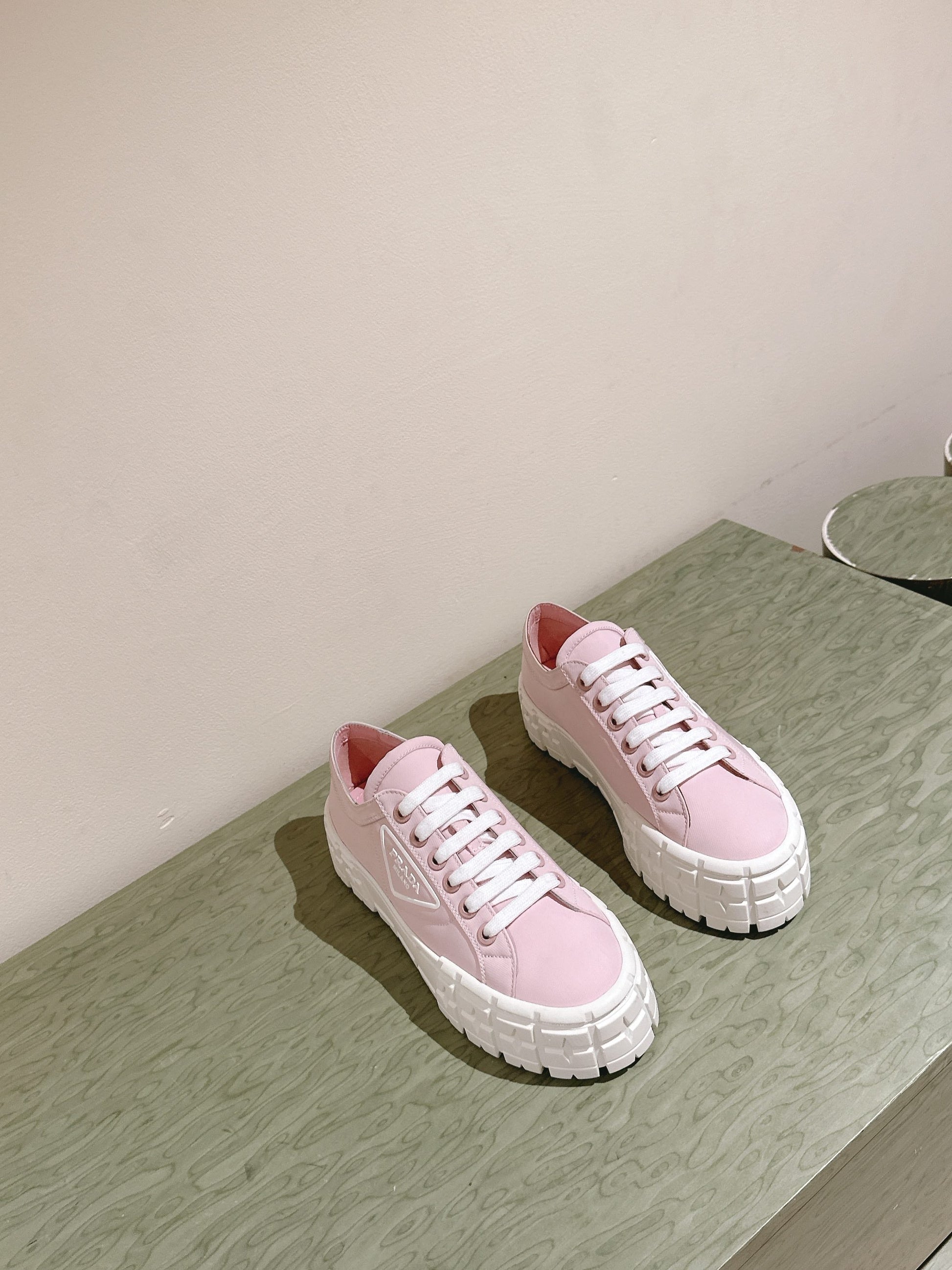 PRA DOUBLE WHEEL RE-NYLON GABARDINE SNEAKERS PASTEL PINK CALFSKIN