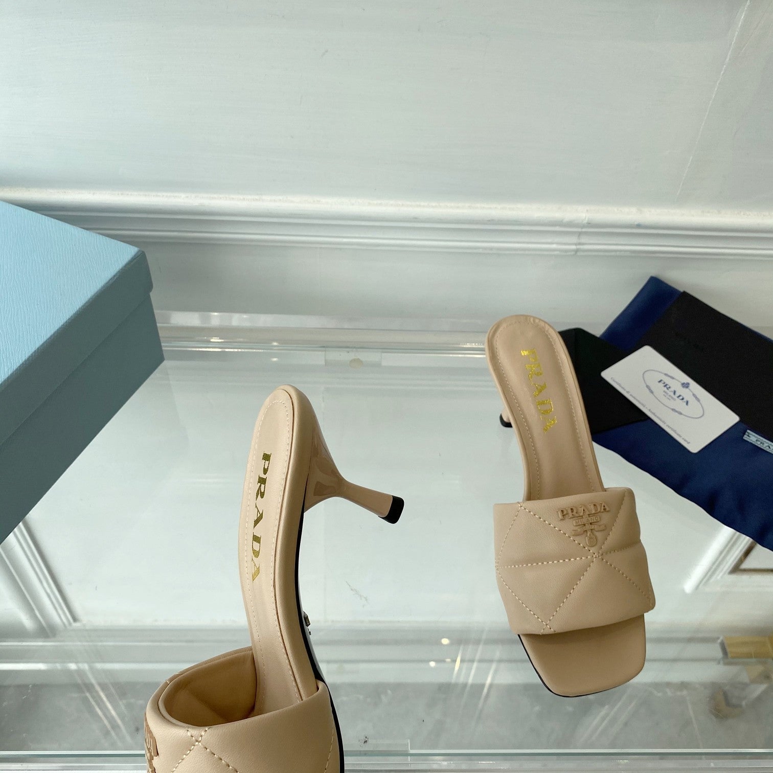 Pra Heeled Sandal 65 Pointed Sole Quilted Beige Leather