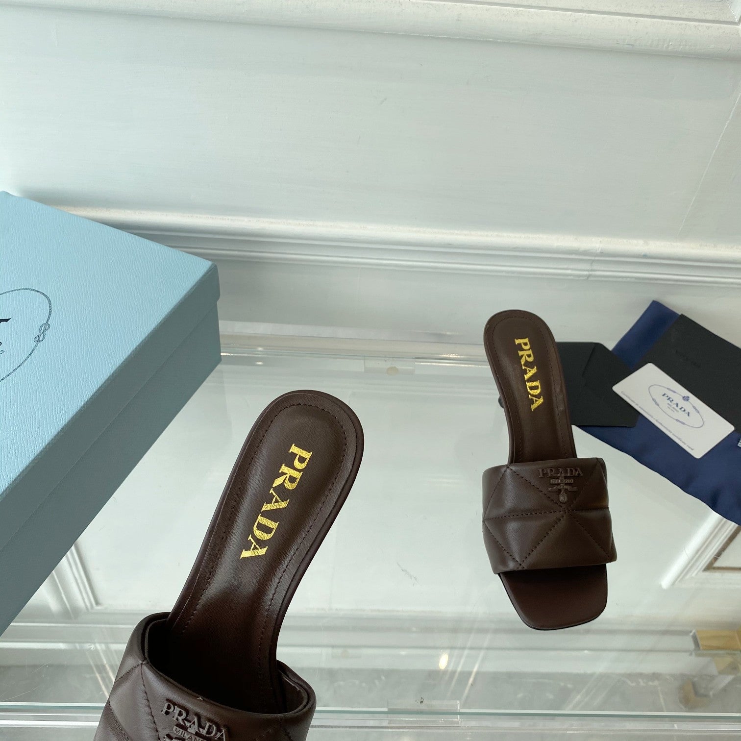 Pra Heeled Sandal 65 Pointed Sole Quilted Chocolate Leather