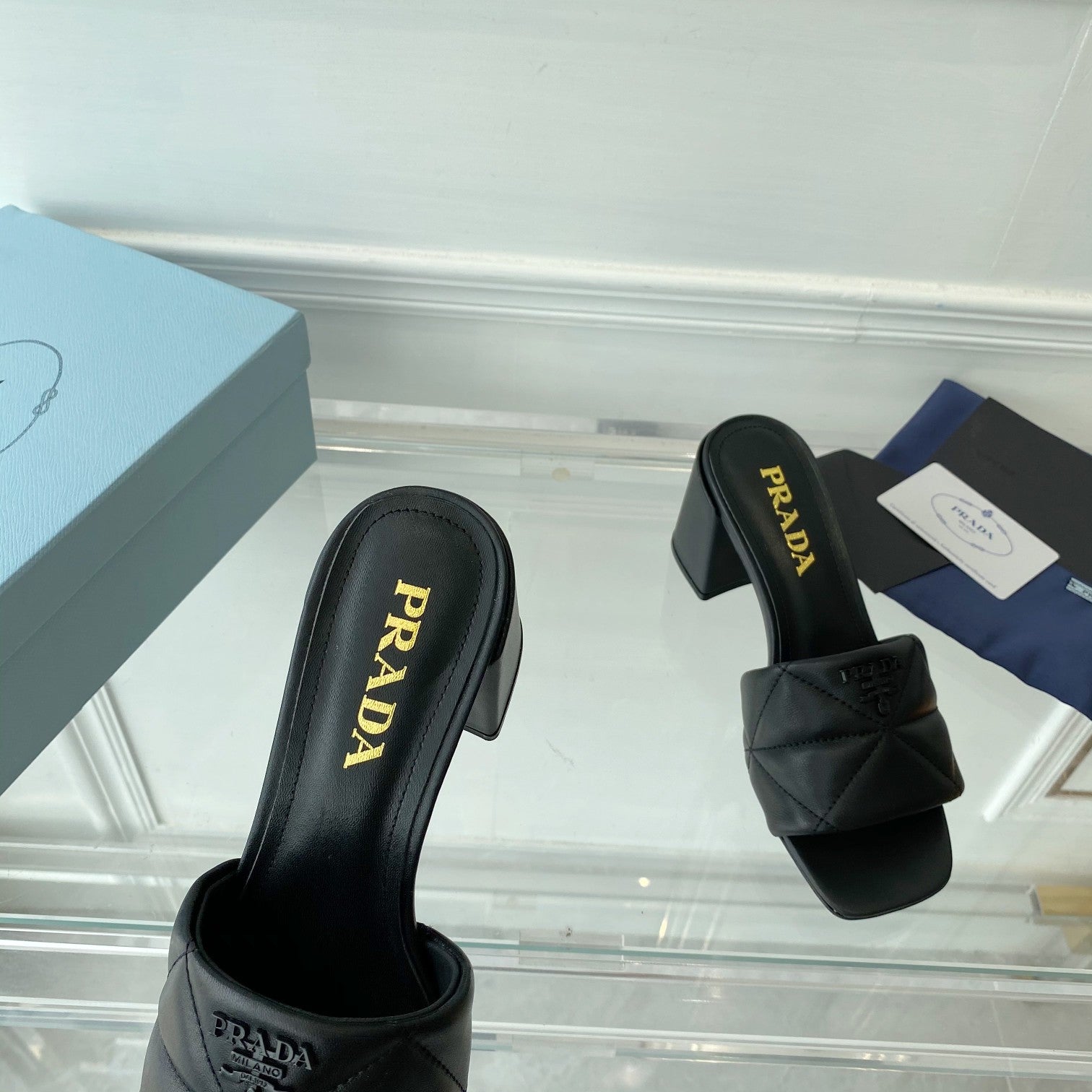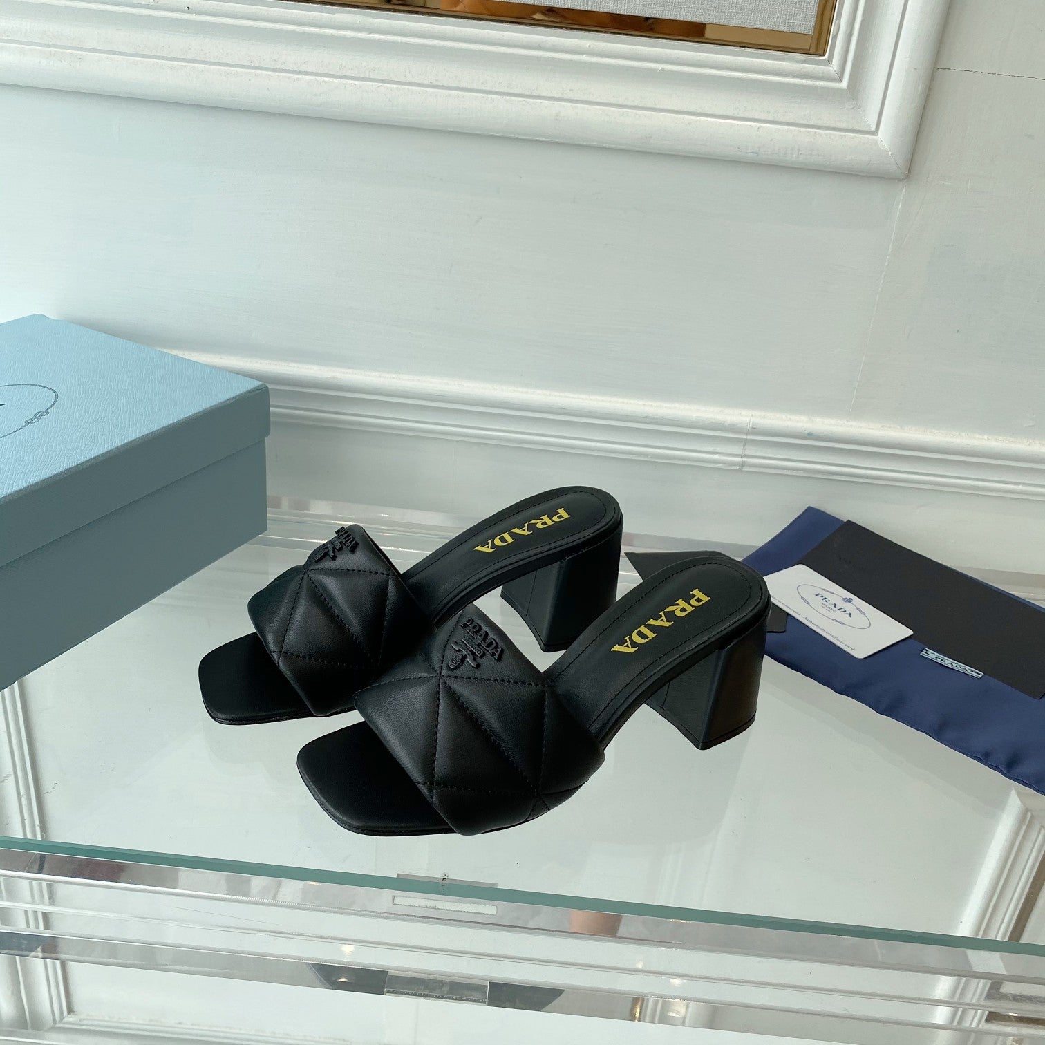 Pra Heeled Sandal 65 Square Sole Quilted Black Leather