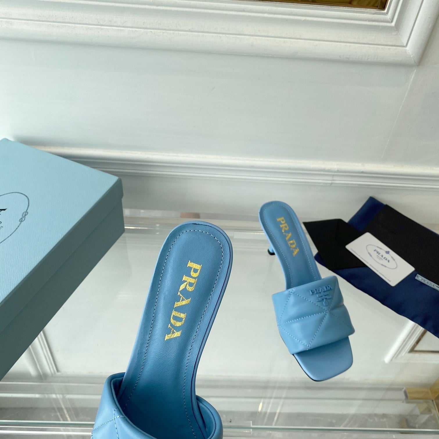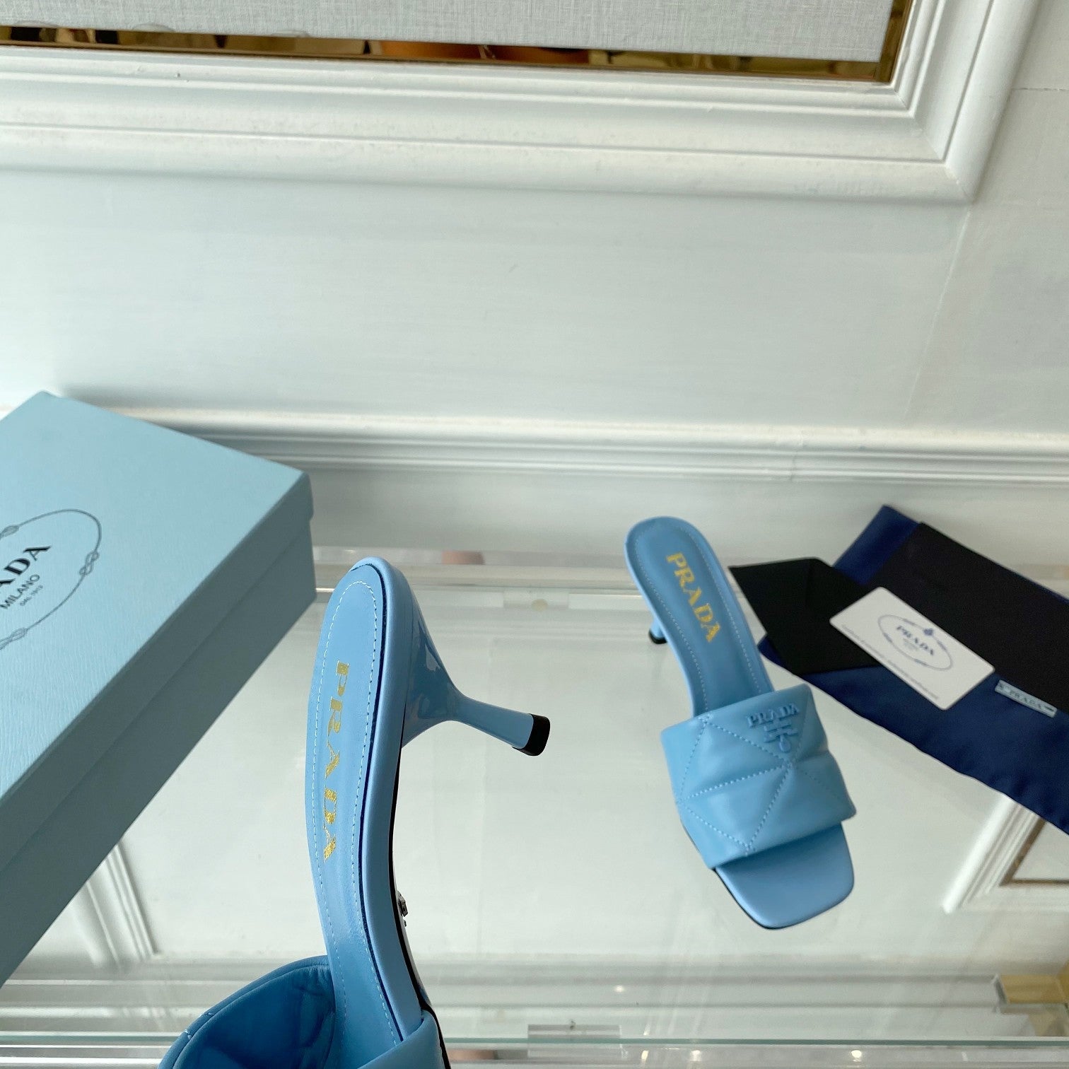PRA QUILTED HIGH HEELS SANDALS 65 SKY LAMBSKIN