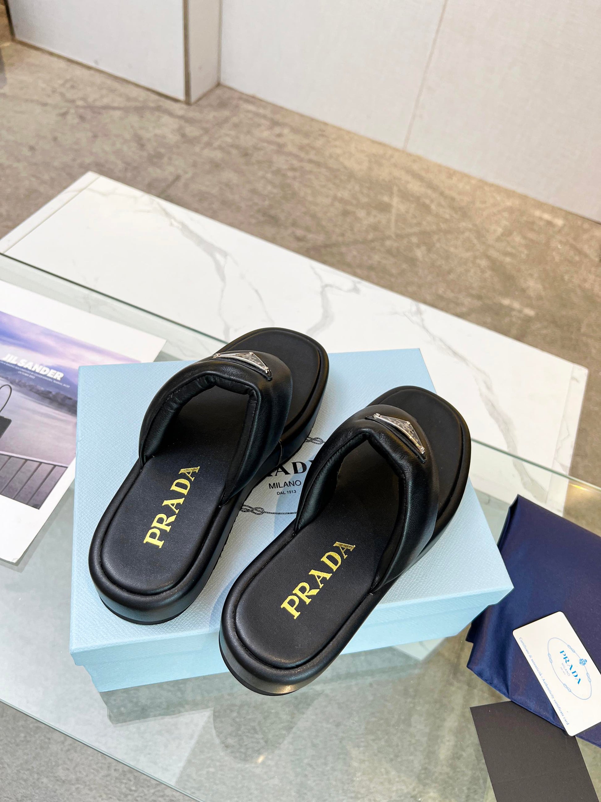 PRA SOFT PADDED NAPPA THONG WEDGE SANDALS BLACK LAMBSKIN