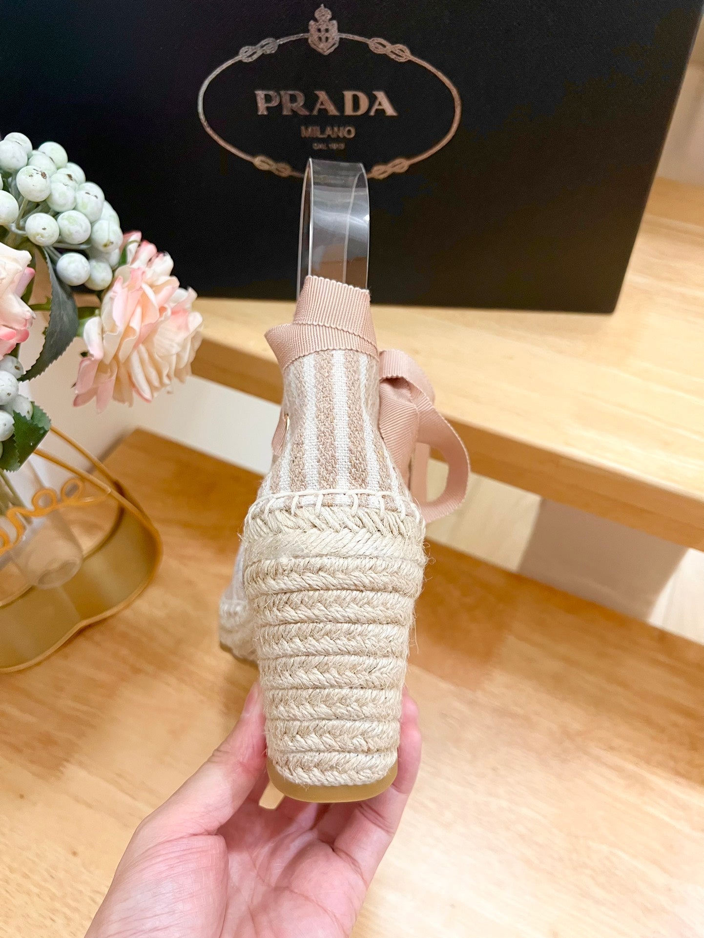 PRA STRIPE ESPADRILLE WEDGE SANDAL PASTEL PINK FABRIC