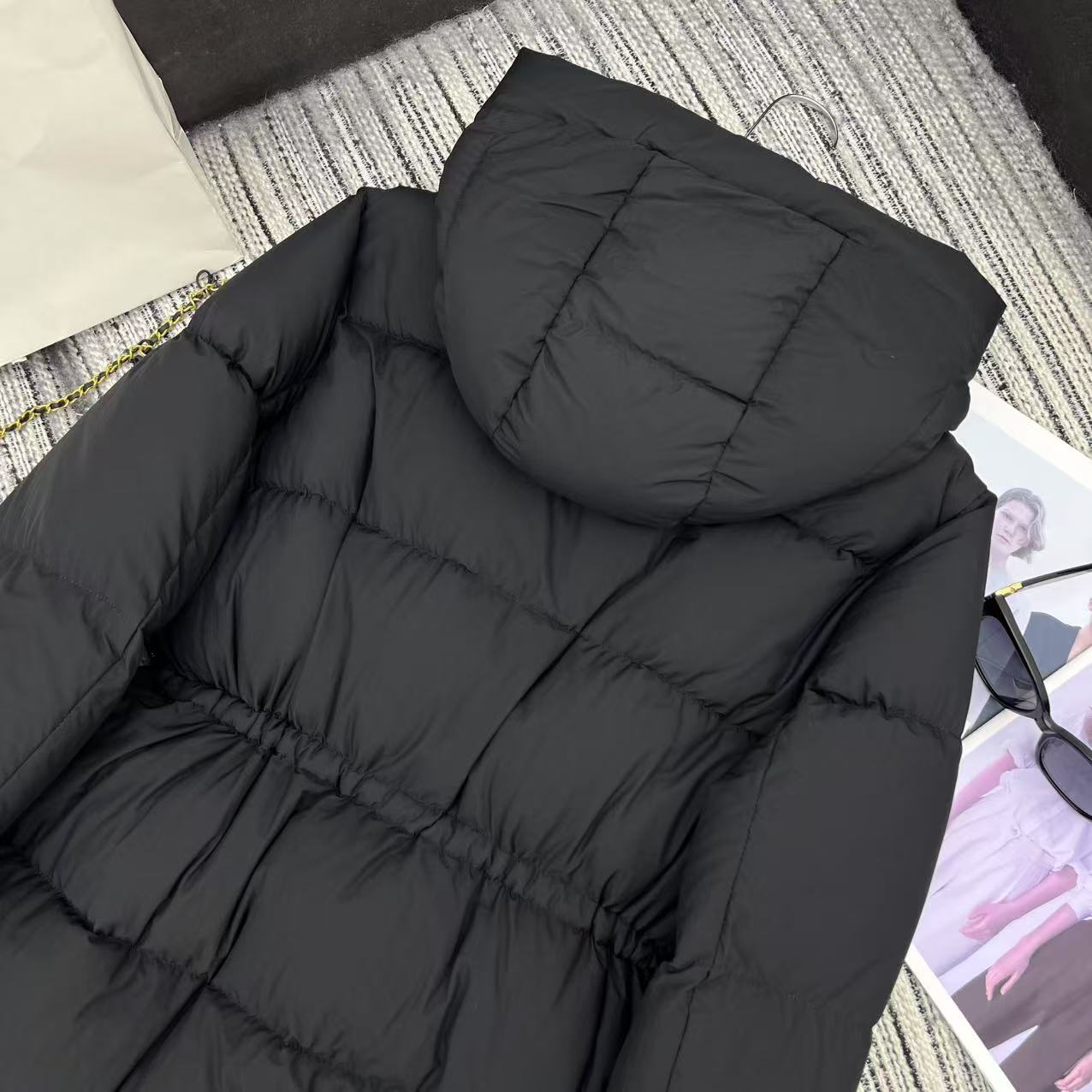 Prada 2025 Drawstring Waist Hooded Jacket Black Down Polyester