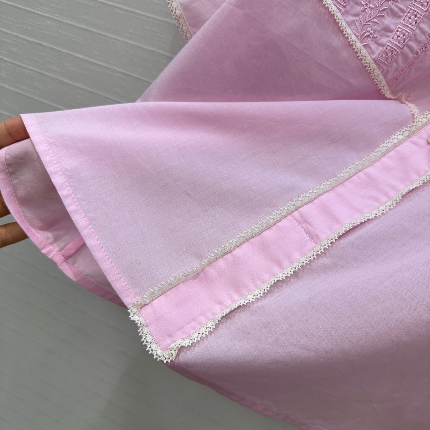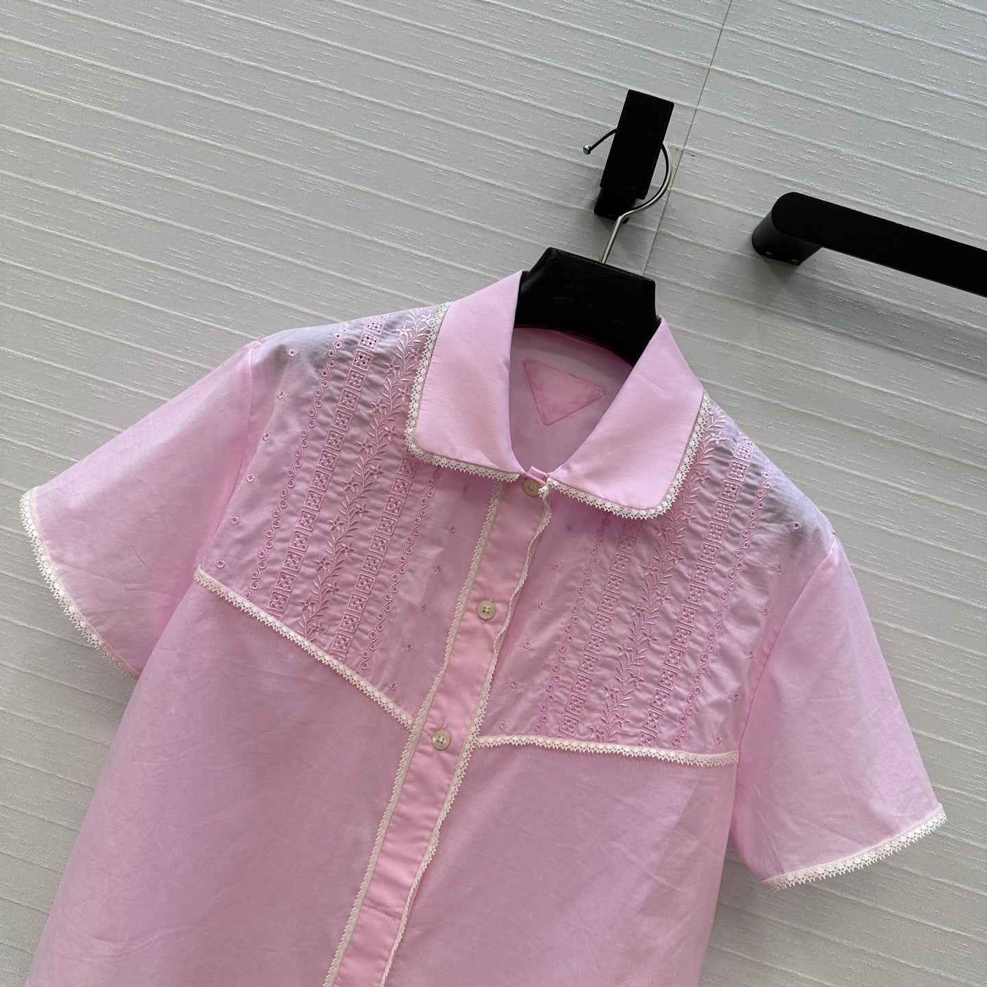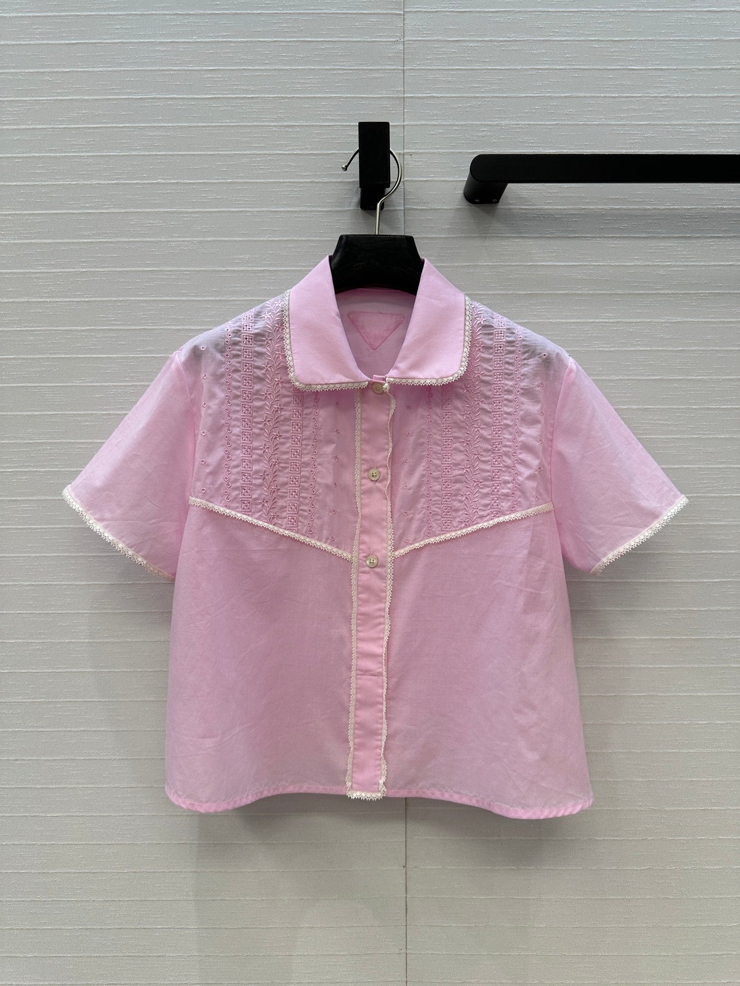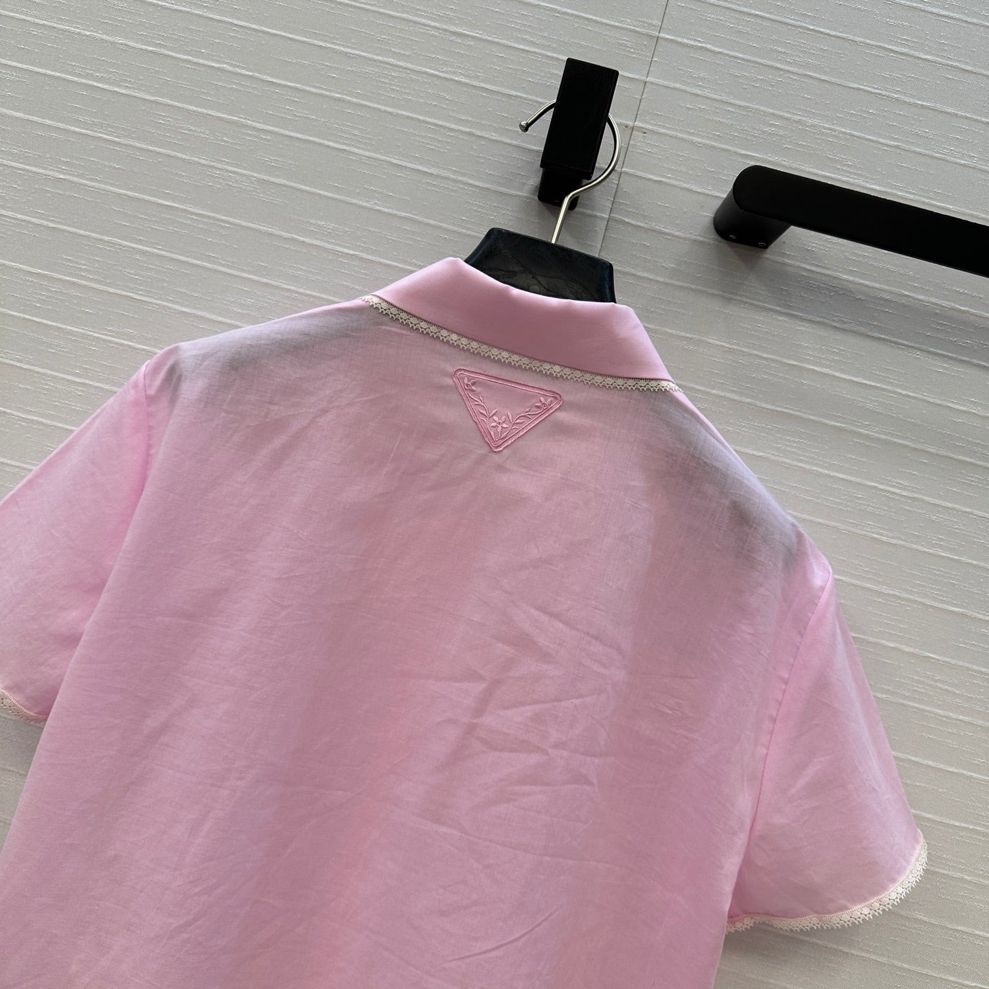 Prada 25 Lace Short-sleeved Shirt Pink Cotton