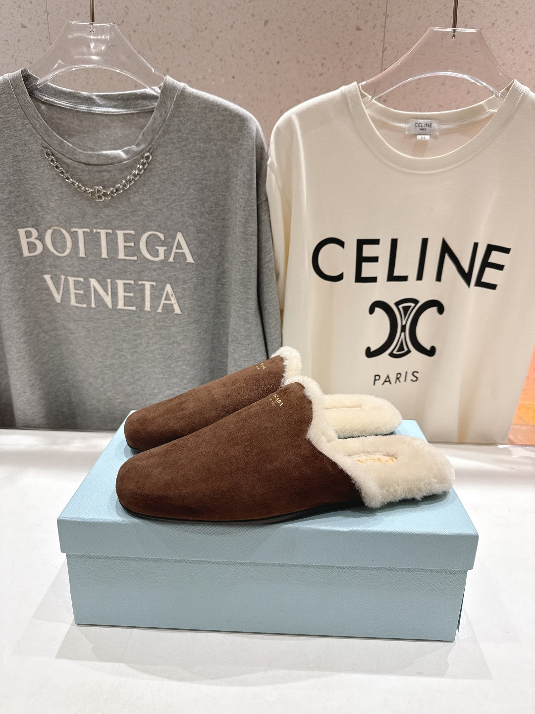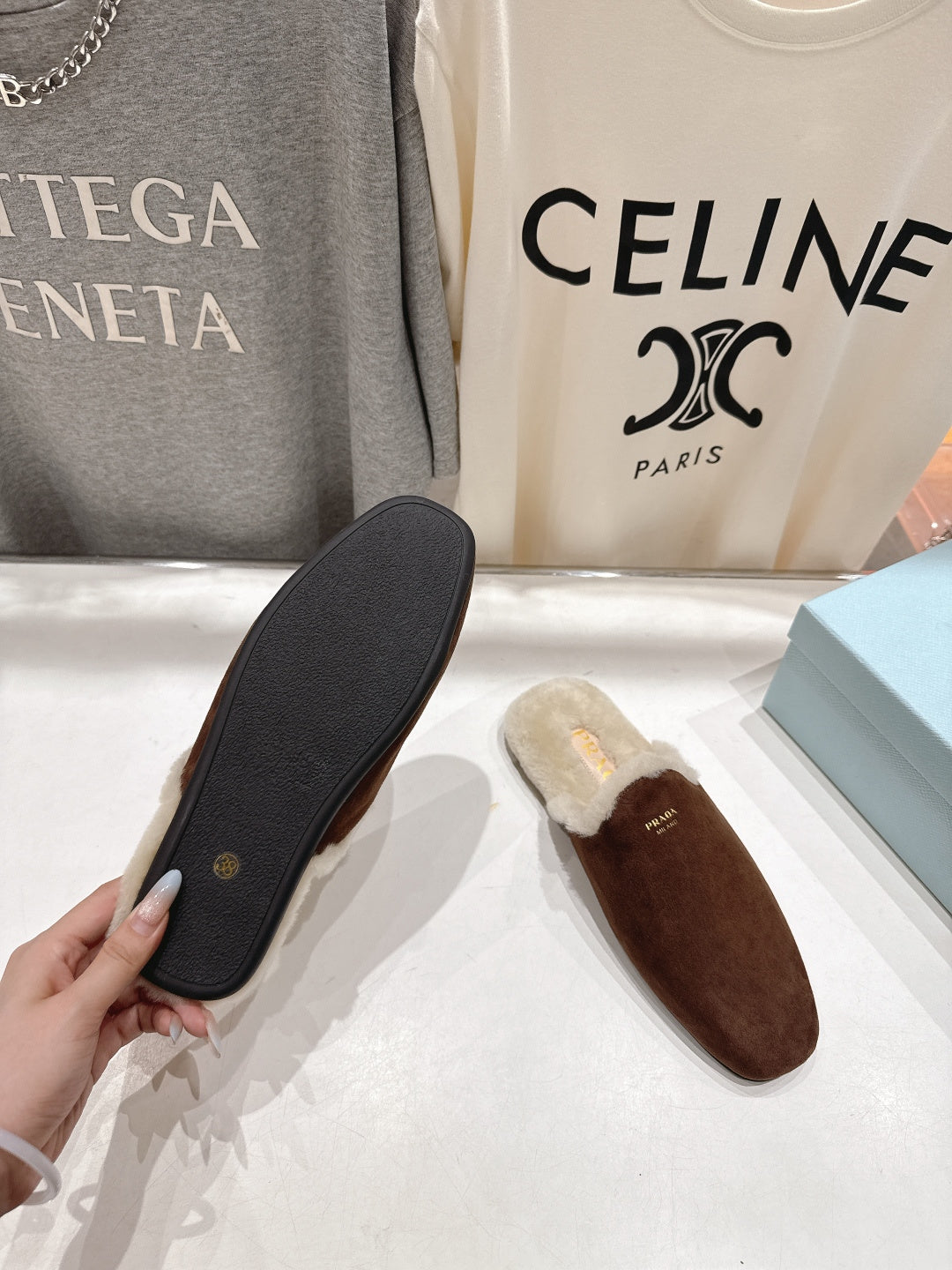 Prada 25s Furry Slippers Brown Suede And Wool 535491