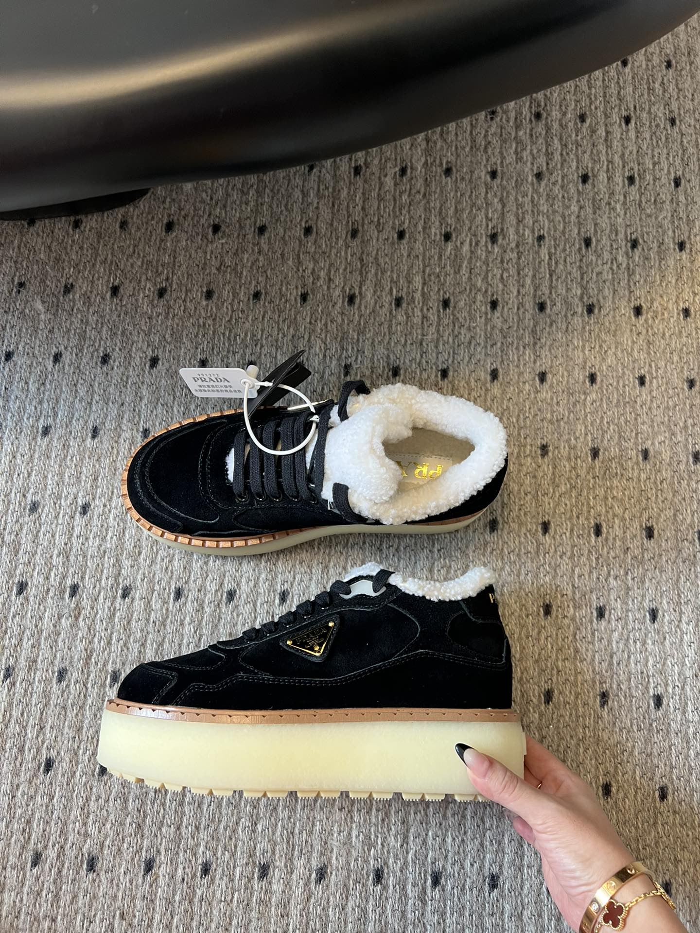 Prada 25s Mid-Top Sneaker Black Suede And Wool 538435