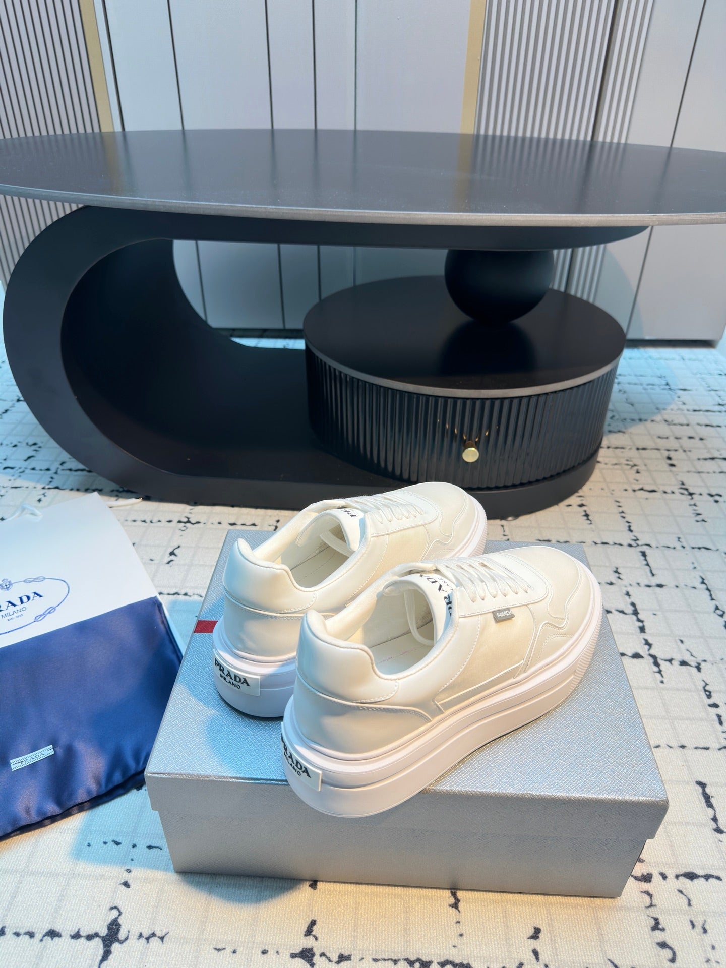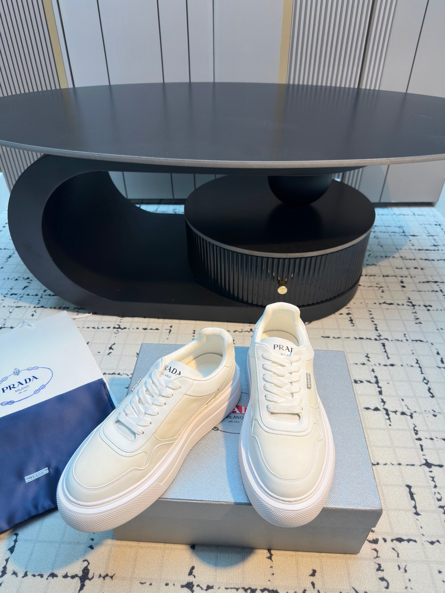 Prada 25s Platform Sneakers White Cowhide 538421