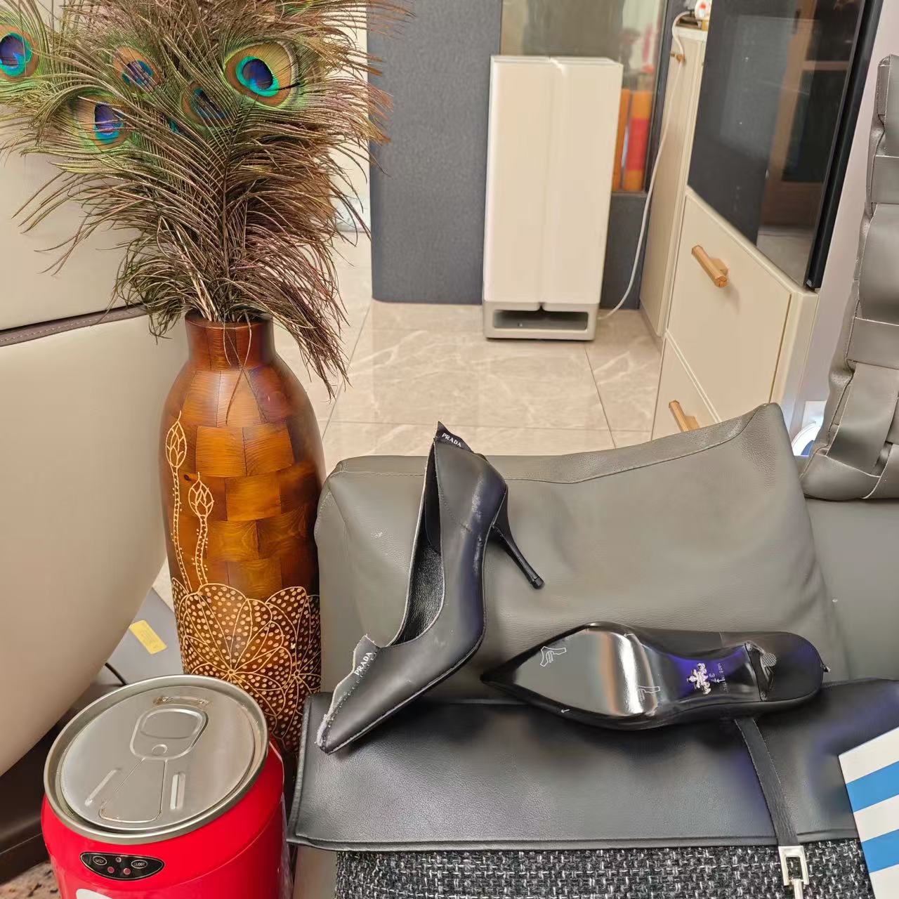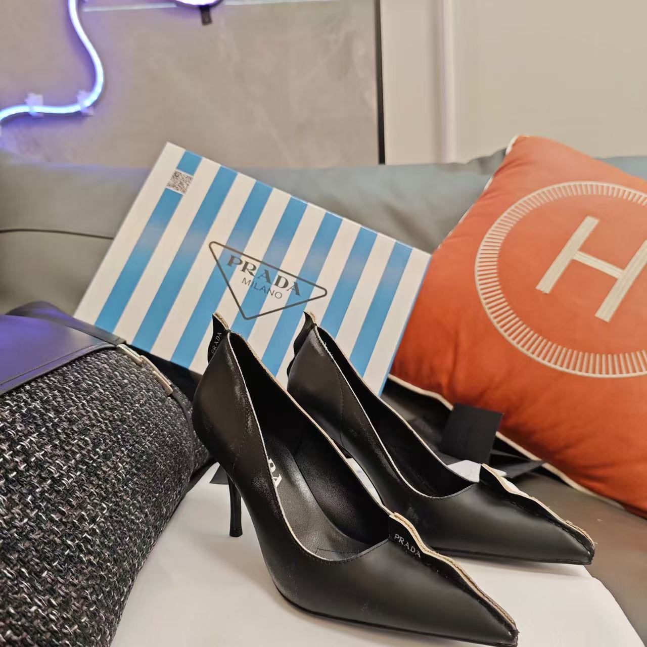Prada Antiqued Pumps Black Tan calfskin