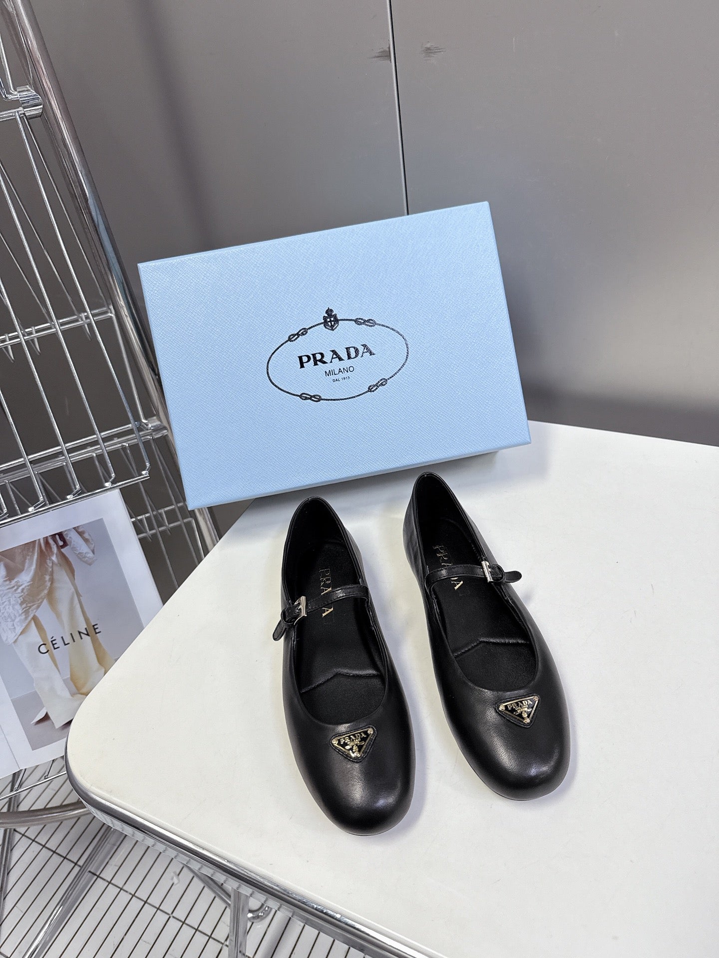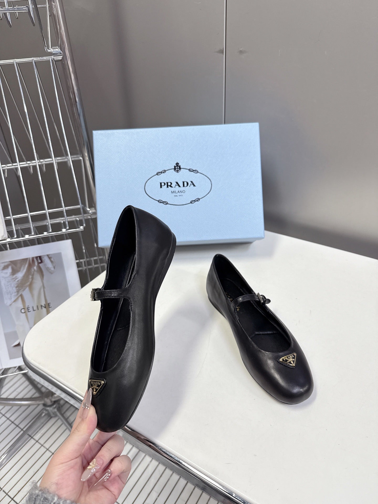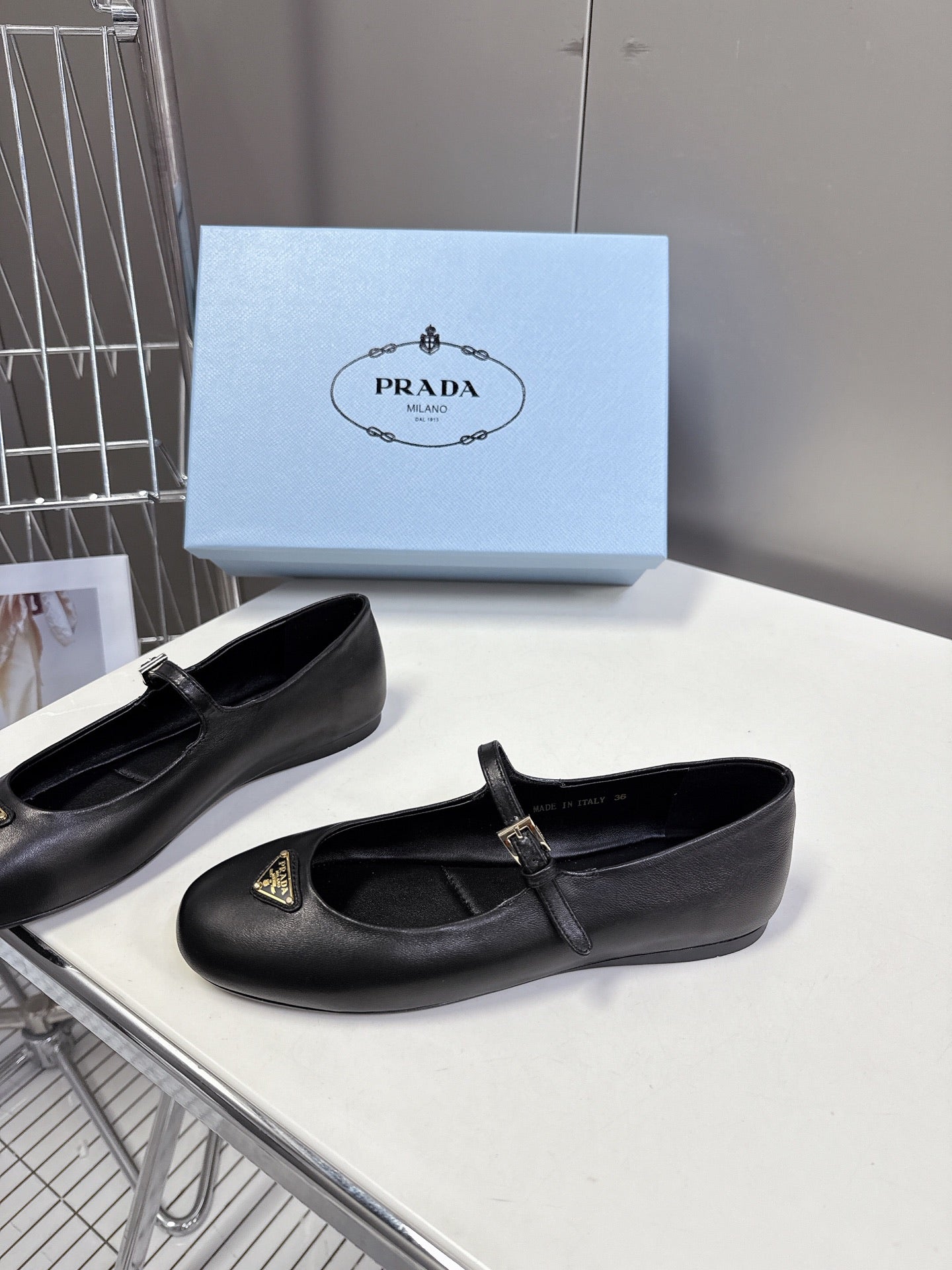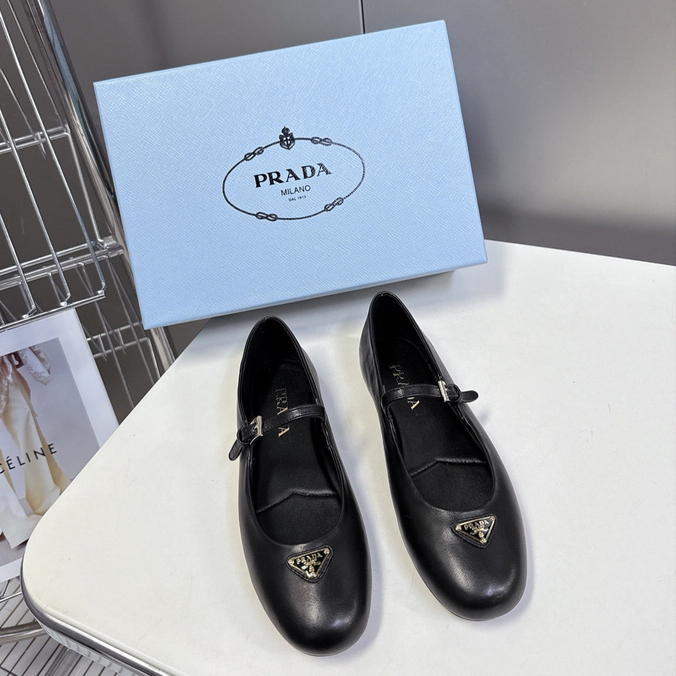 Prada Ballet Flat Black Patent Sheepskin