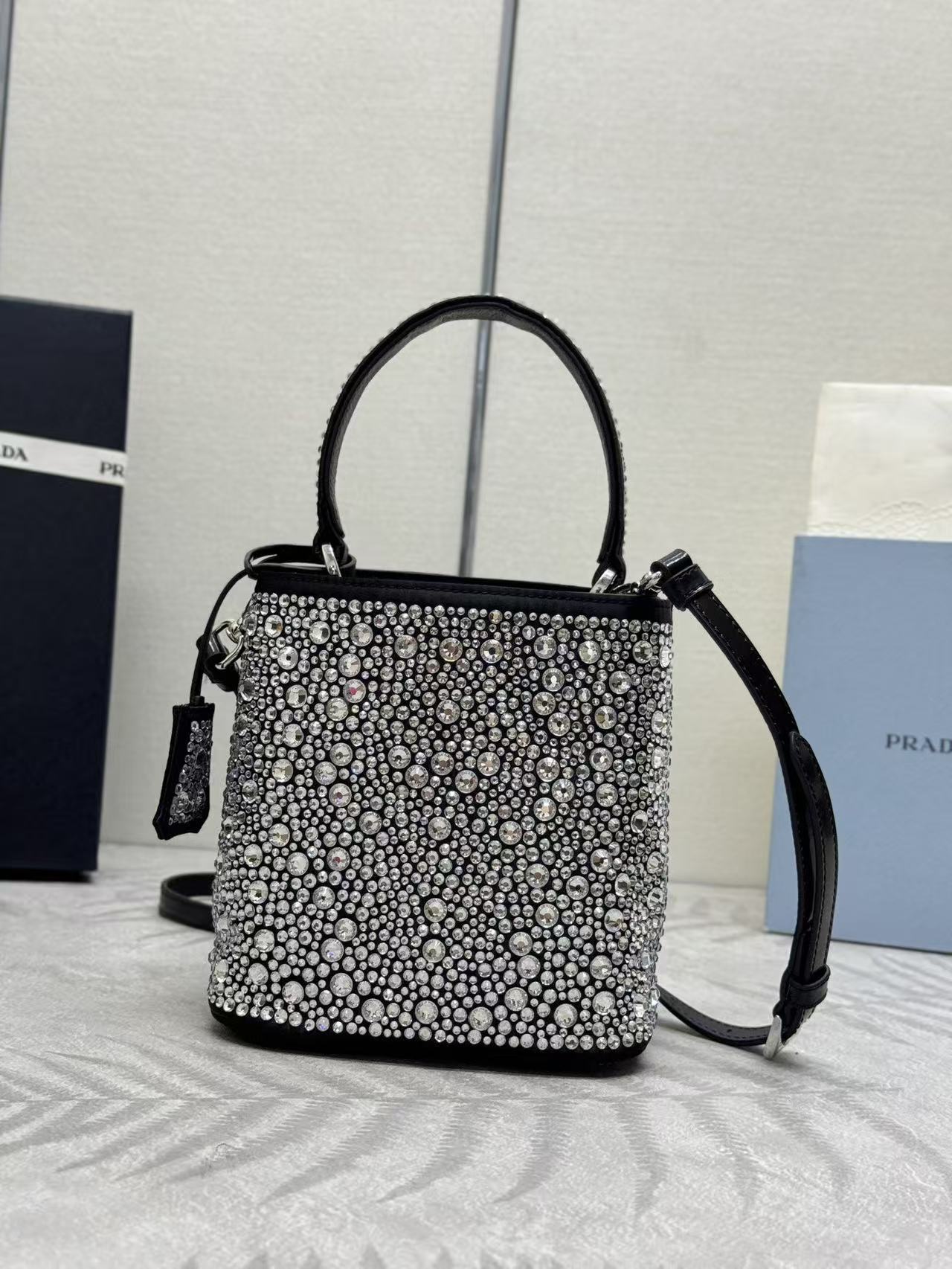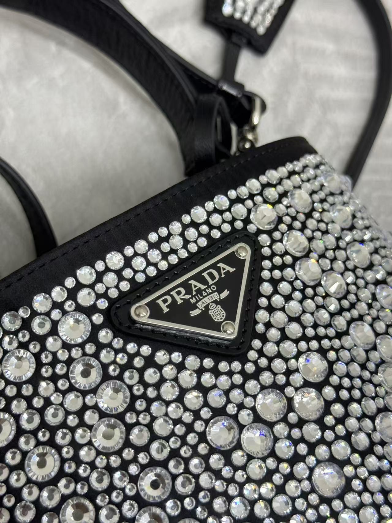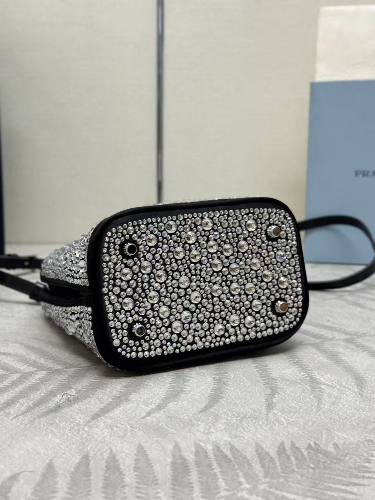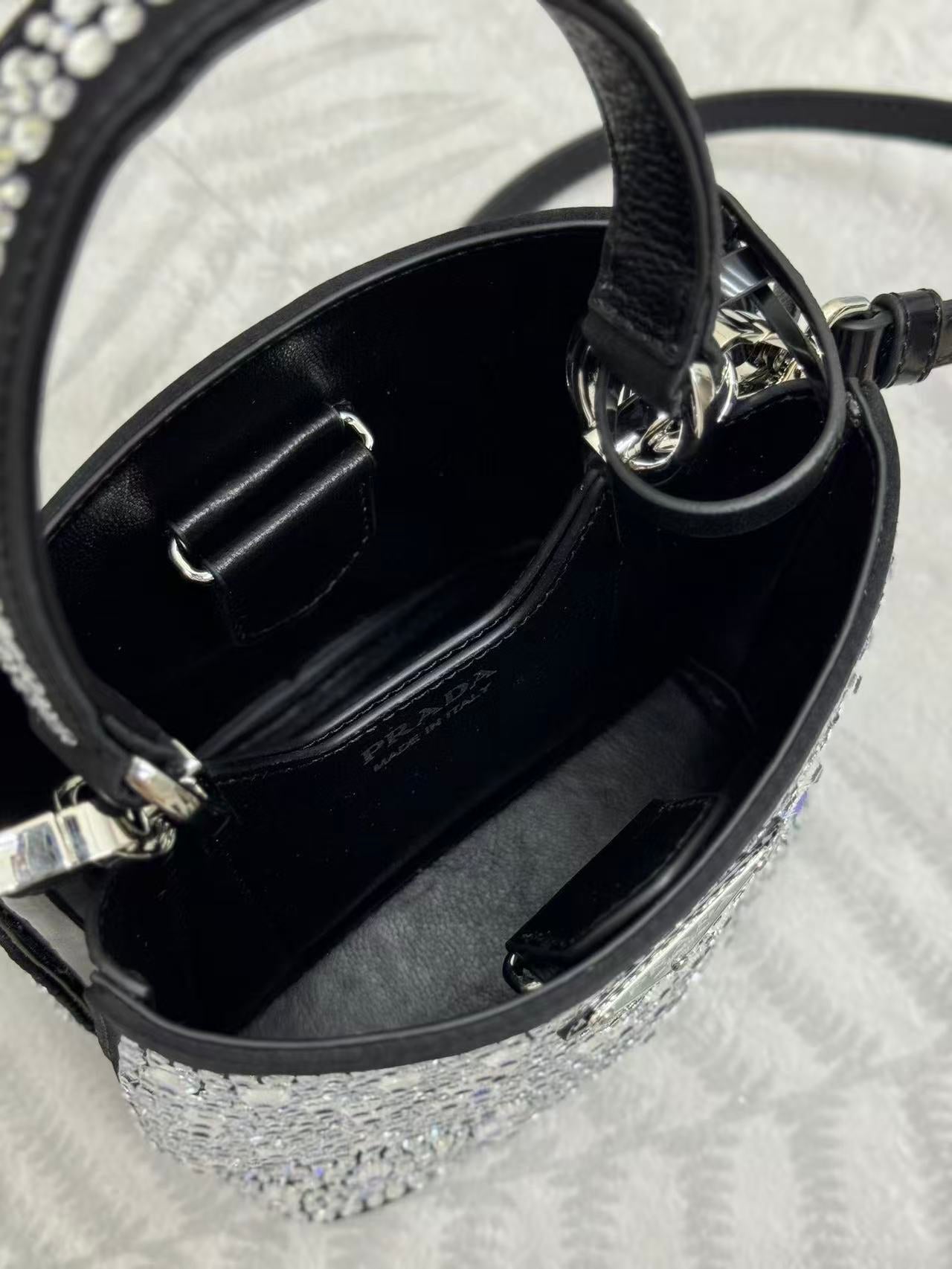 Prada Panier Bag Black White Crystal-embellished Leather