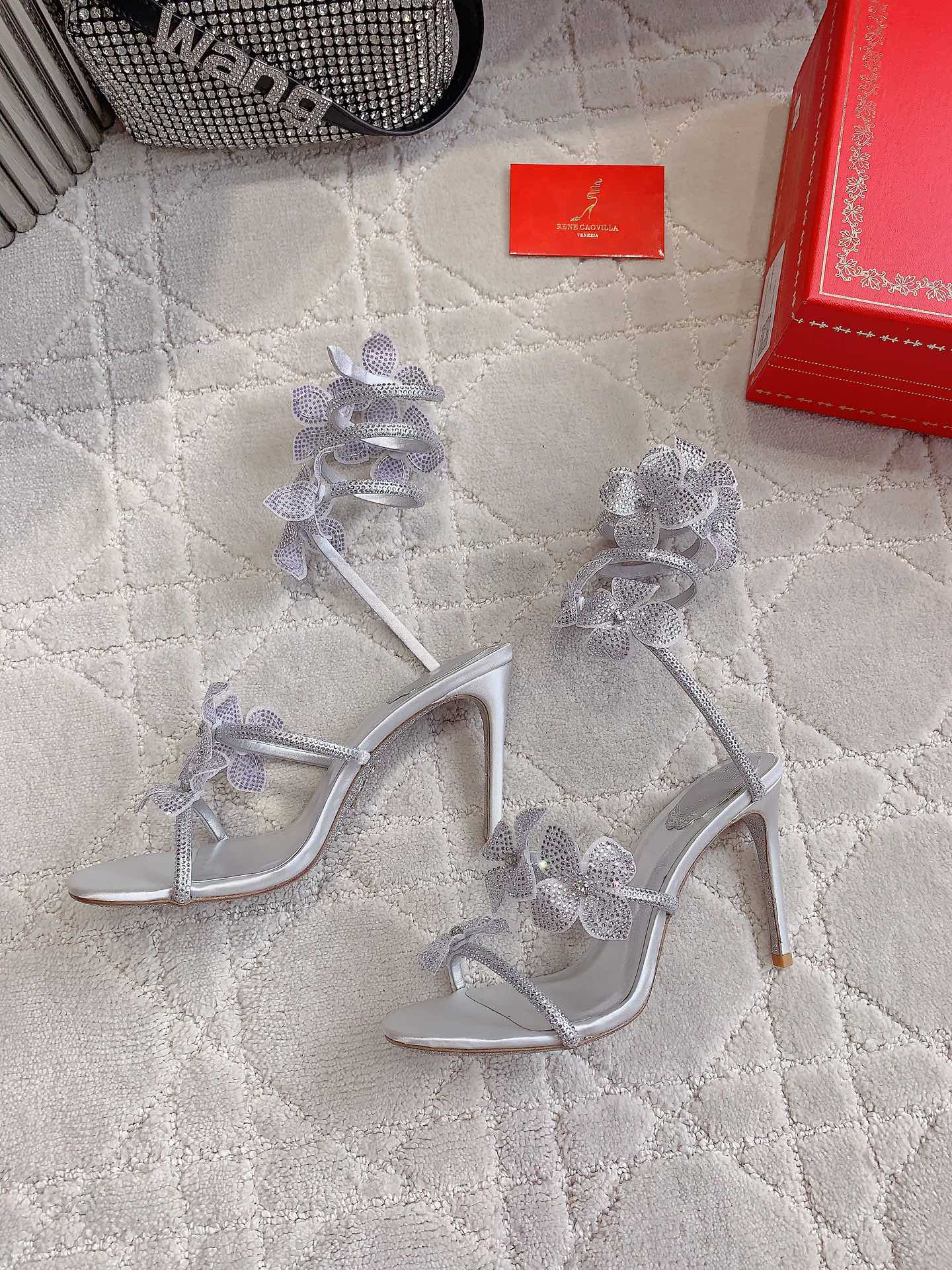 RC 2025 Margot High Heeled Sandal With Floral Embellishment Silver Leather 898021