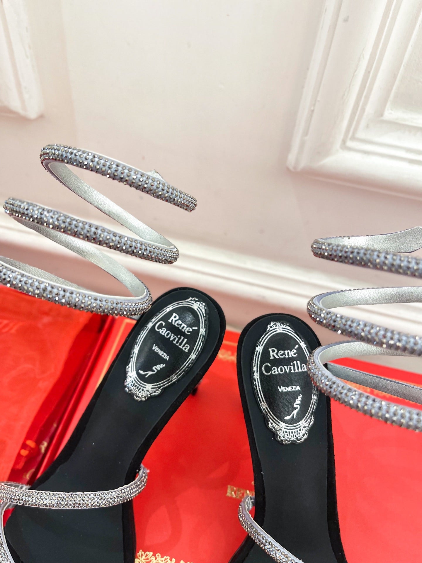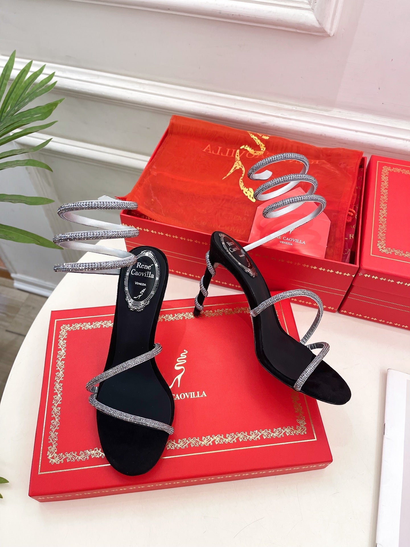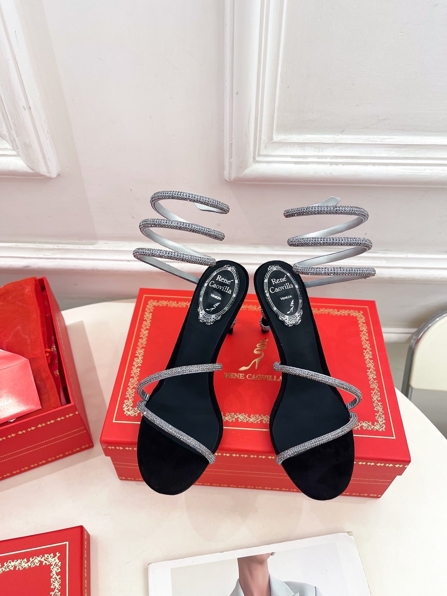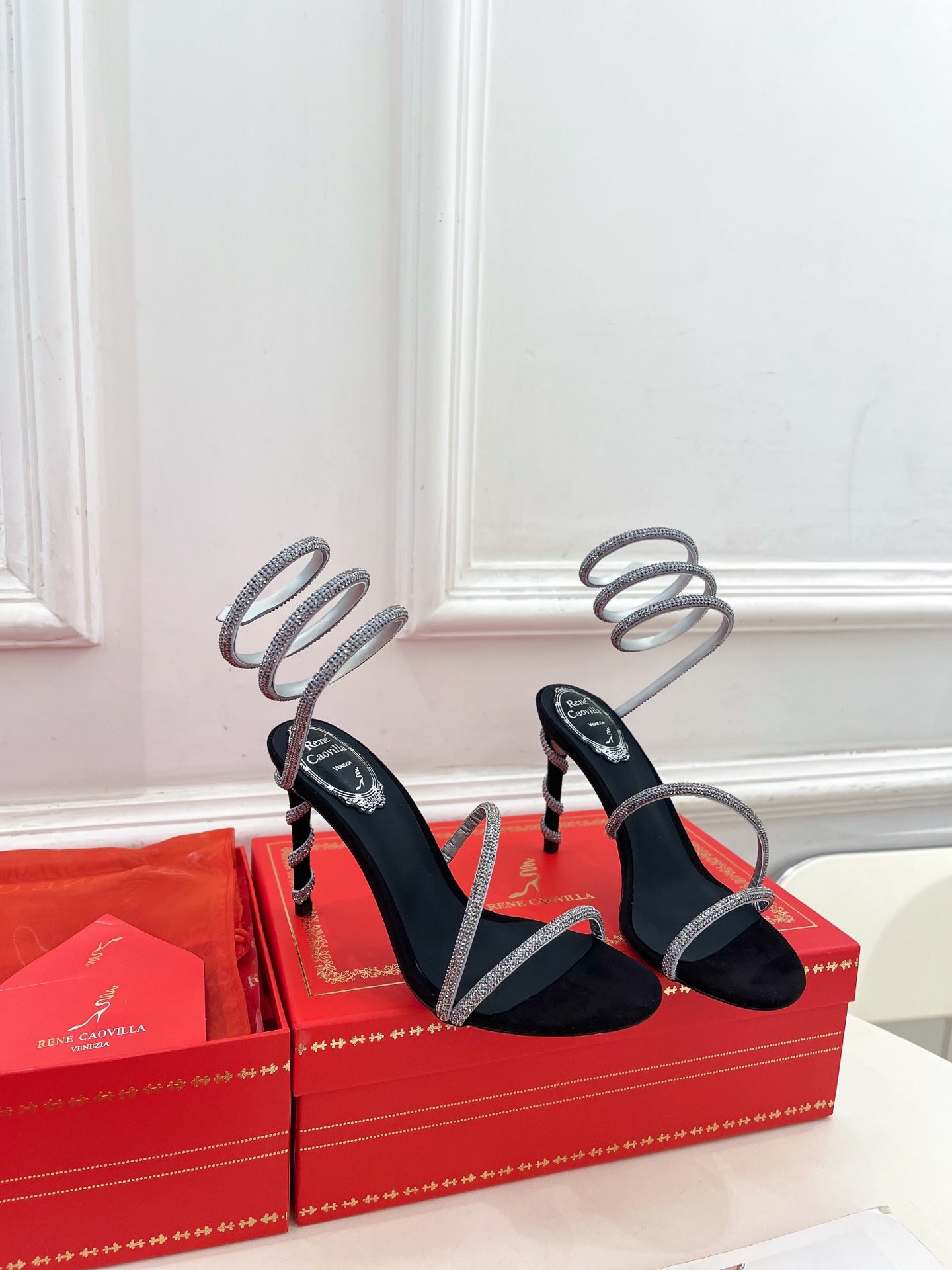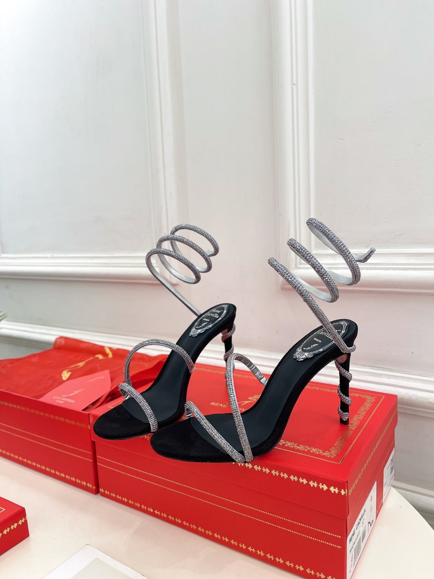 RC 25 Crystal Diamond Snake-Shaped High-Heeled Black Silver Silk Rhinestones 253546
