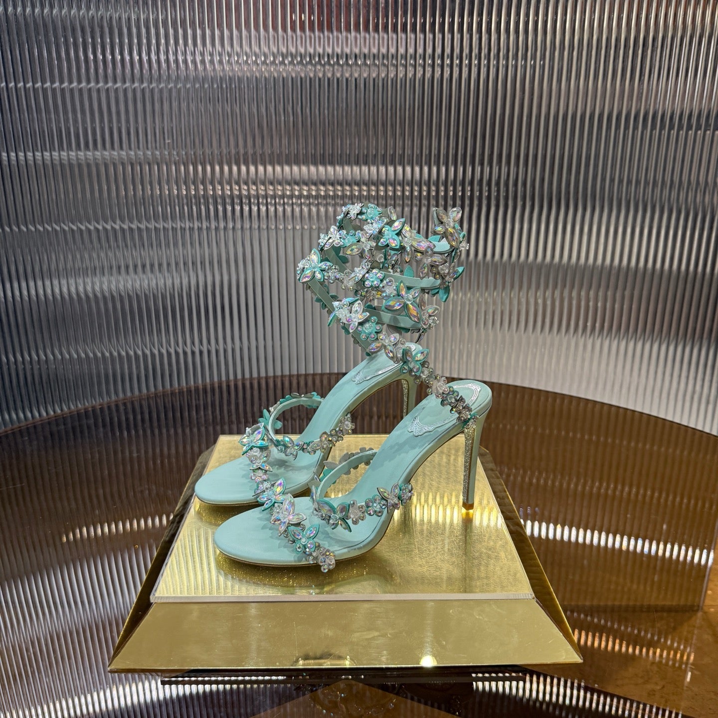 RC 25C Butterfly Flower Sandals Green Sheepskin Rhinestones 310659