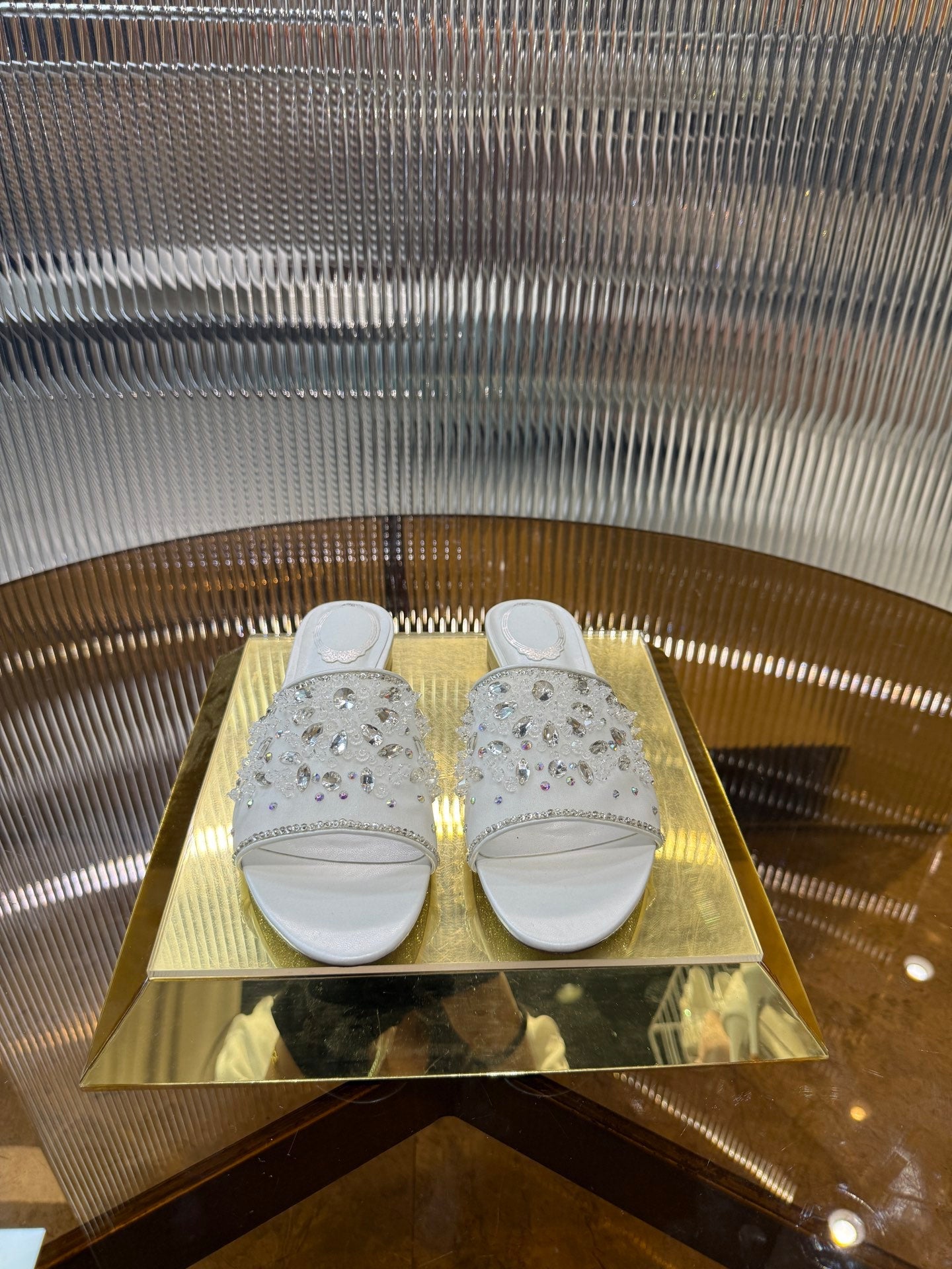 RC 25C Butterfly Flower Sandals Slippers White Sheepskin Rhinestone 275764