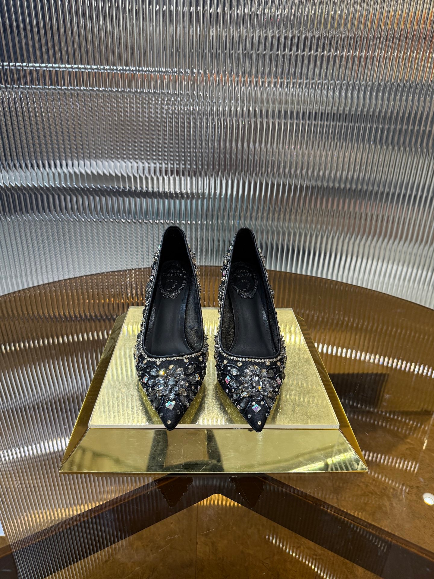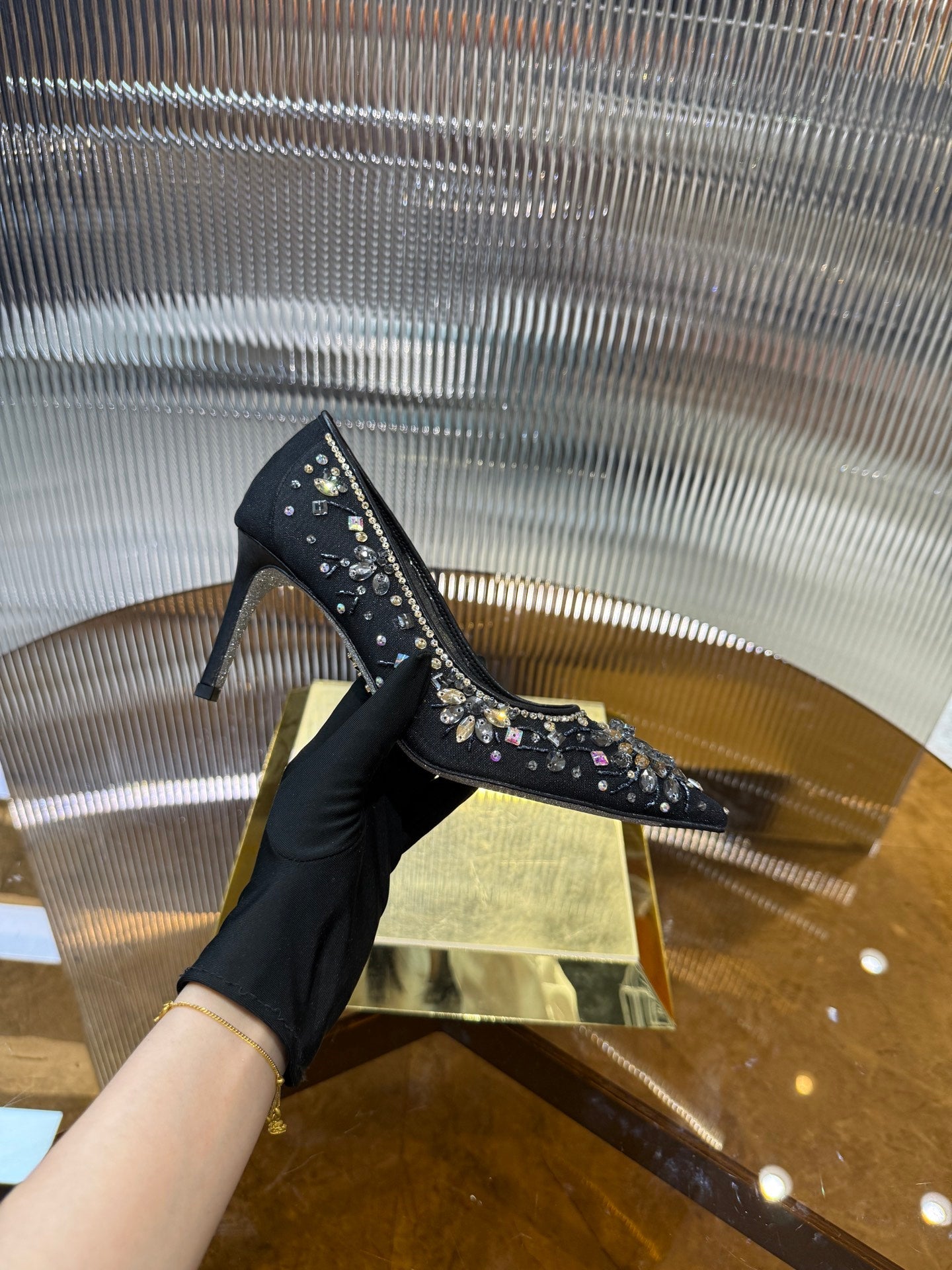 RC 25C Crystal Pearl Gem Lace High Heels Black Sheepskin 275754
