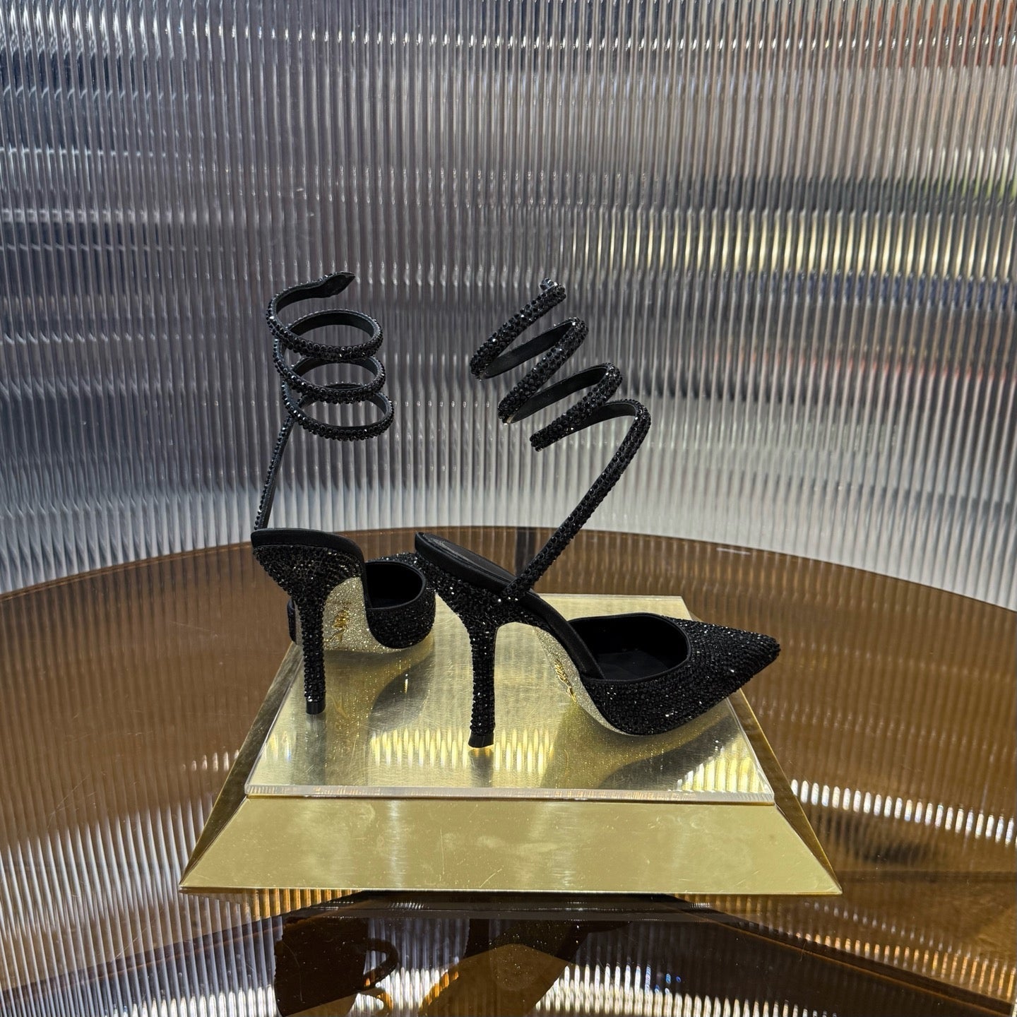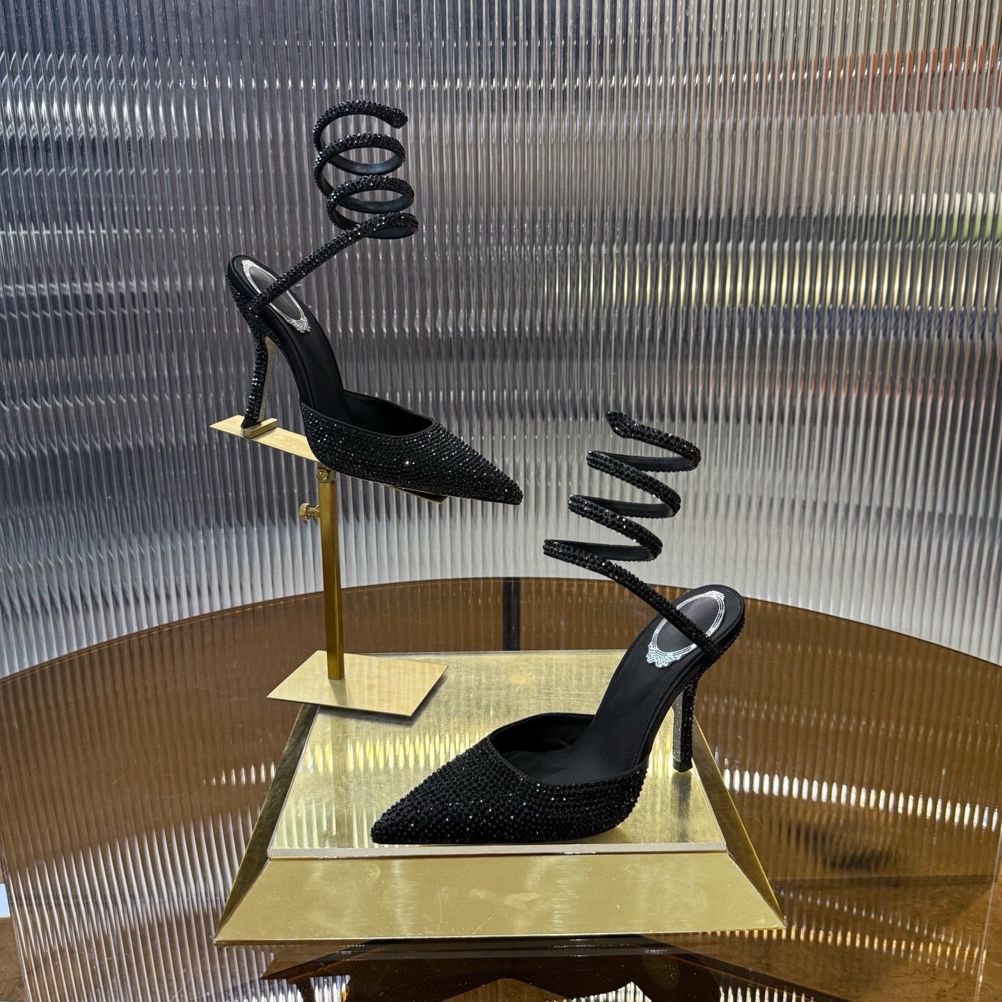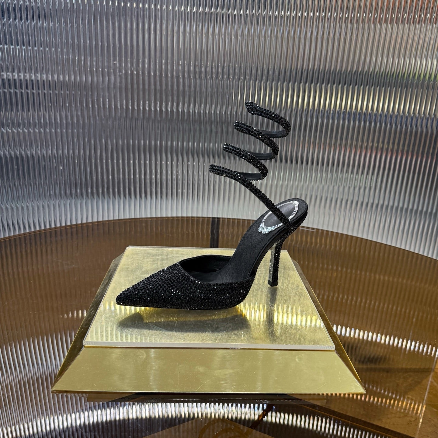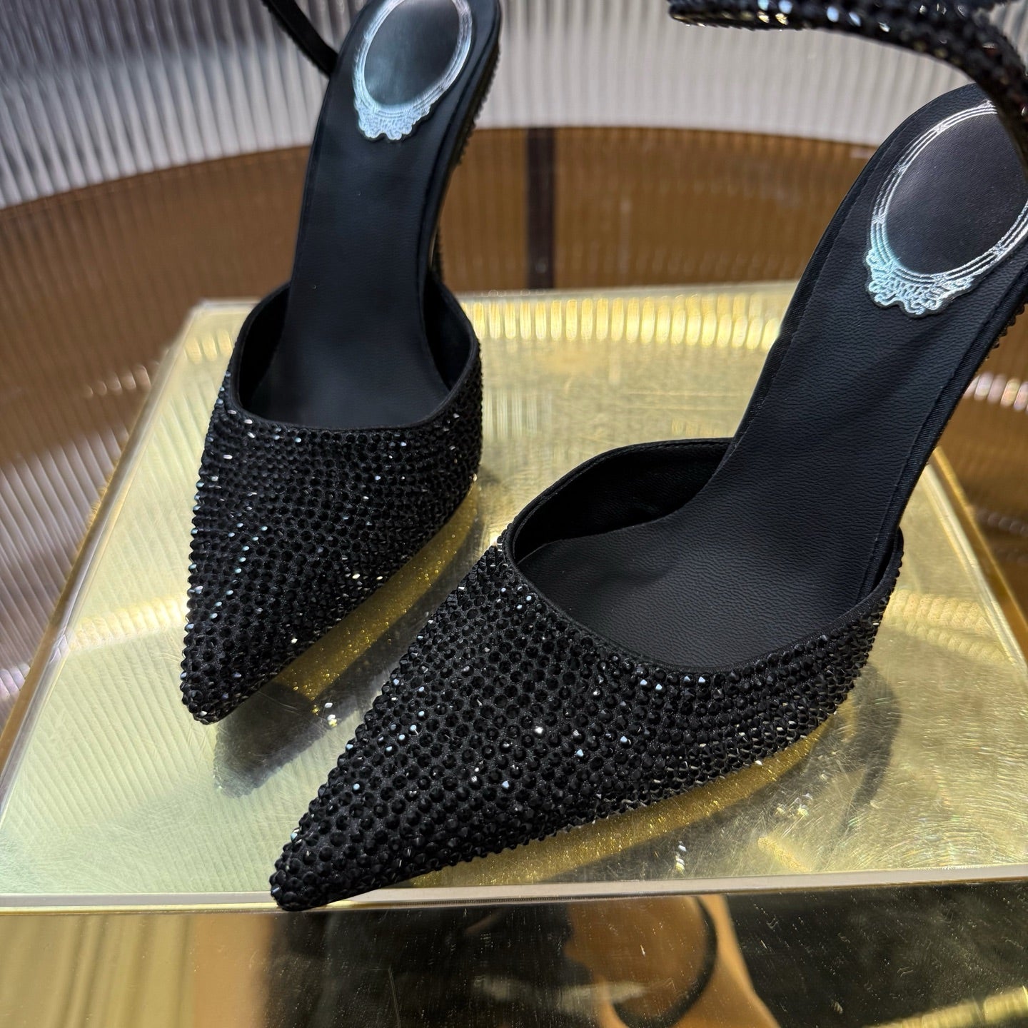 RC 25C Single Sandals Black Sheepskin Rhinestone 339496