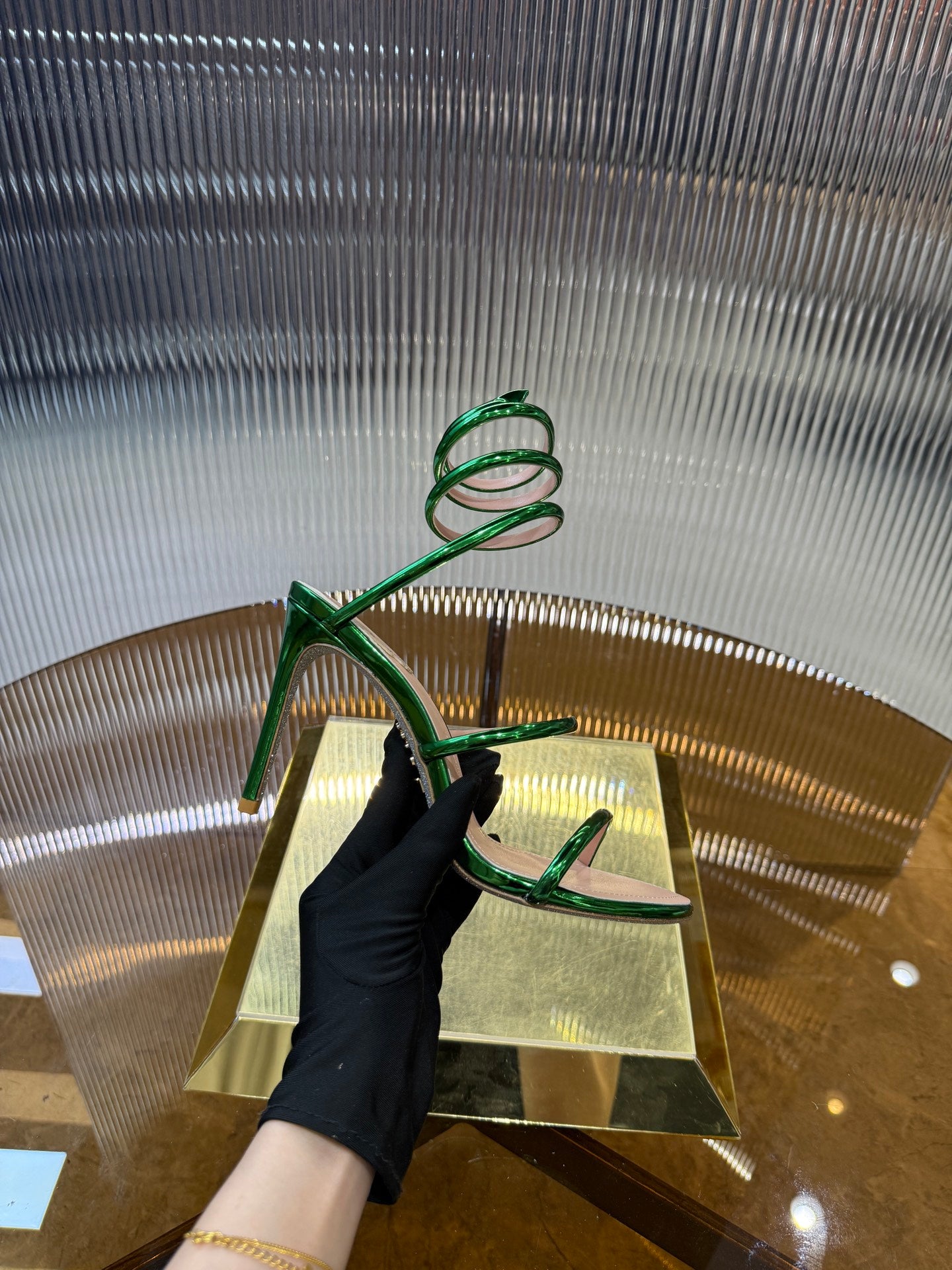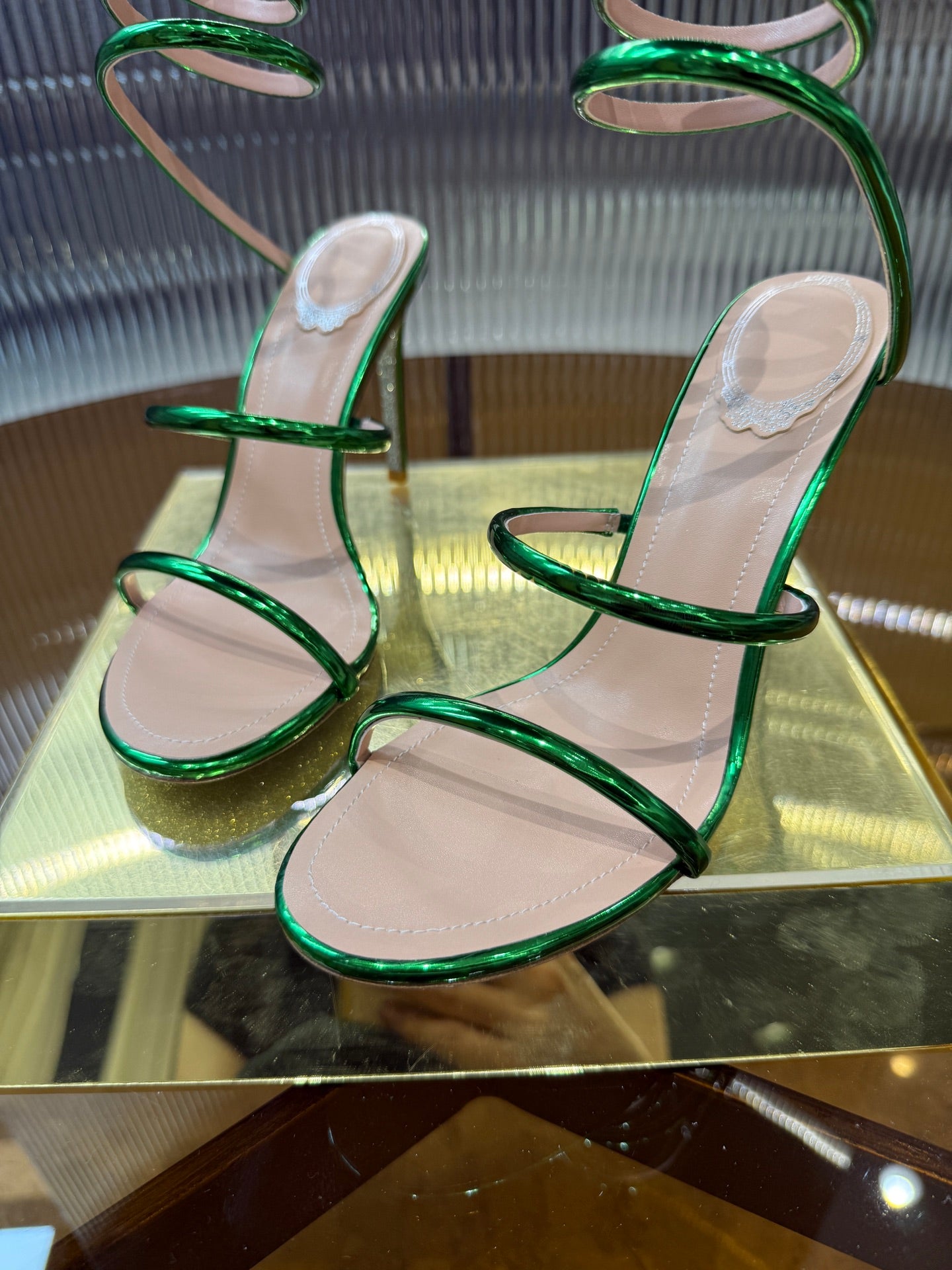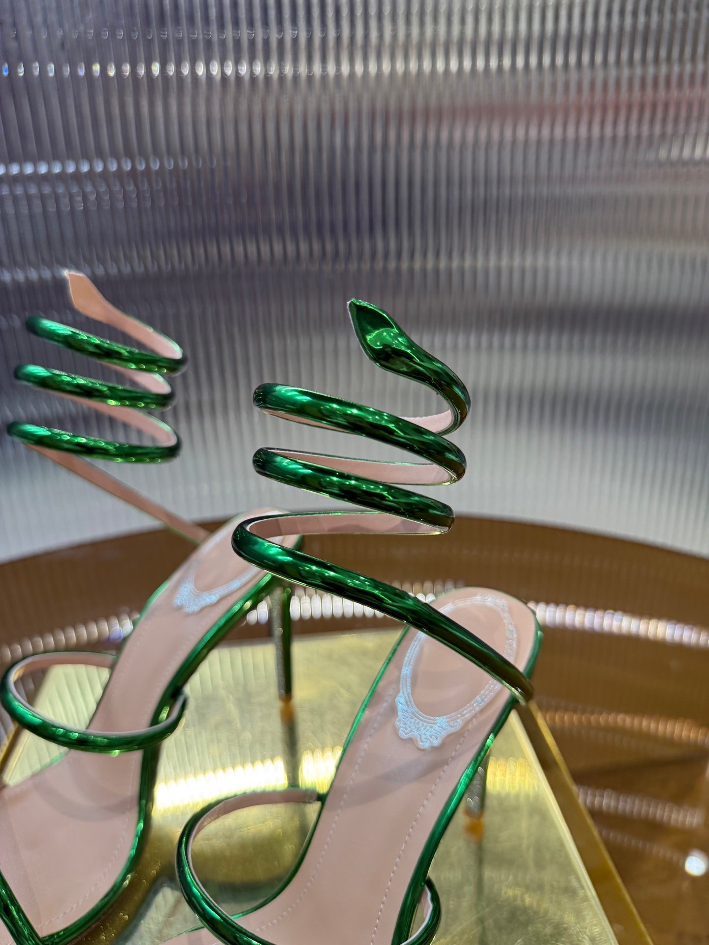 RC 25C Snake-Shaped Sandals 9.5cm Green Sheepskin 310627