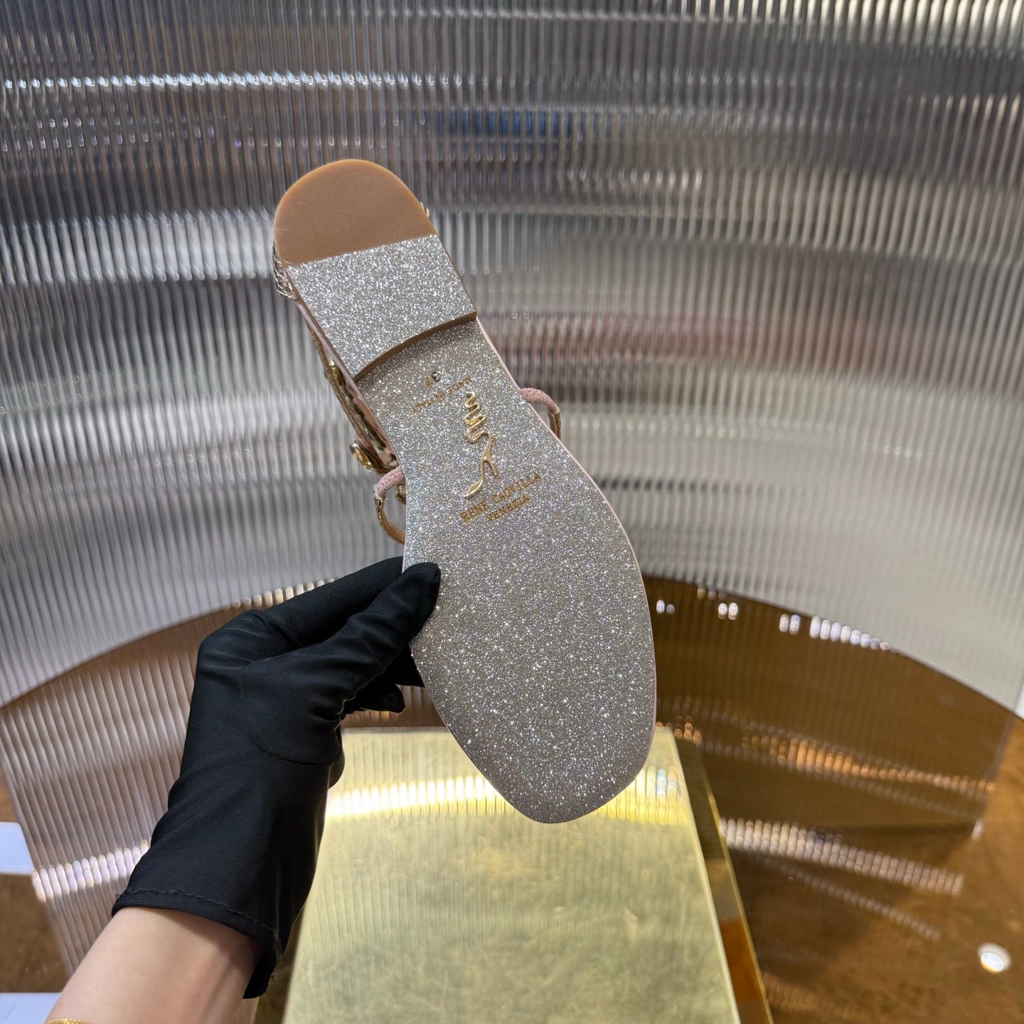 RC 25C Thong Diamond Sandals Pink Sheepskin Rhinestone 339503