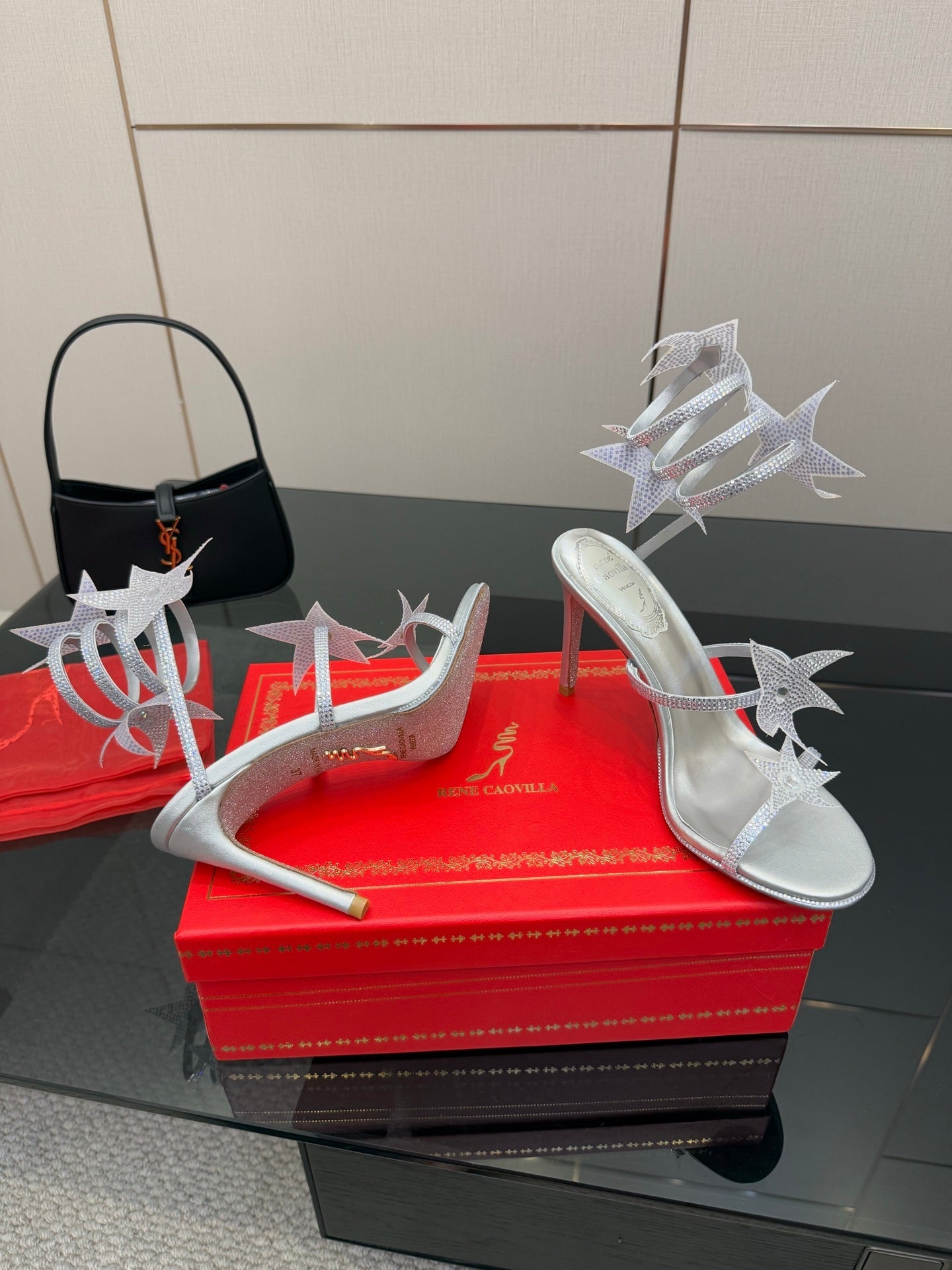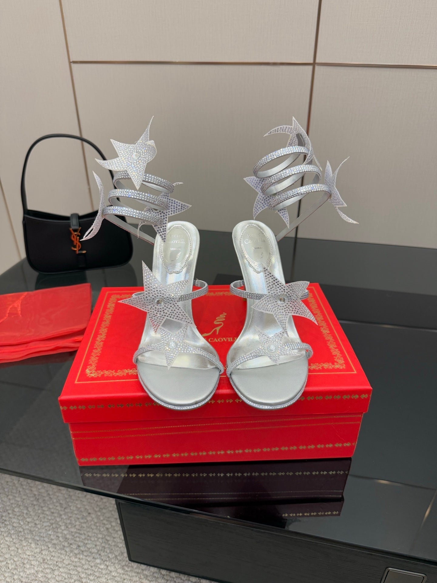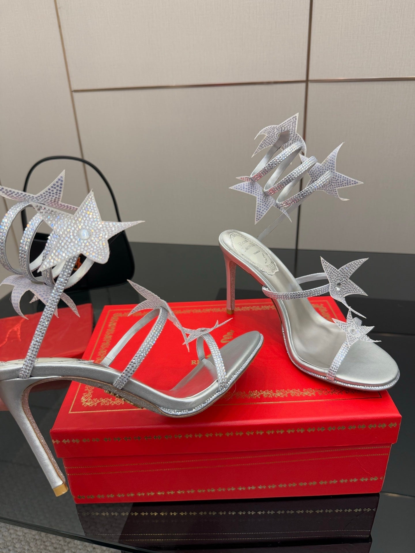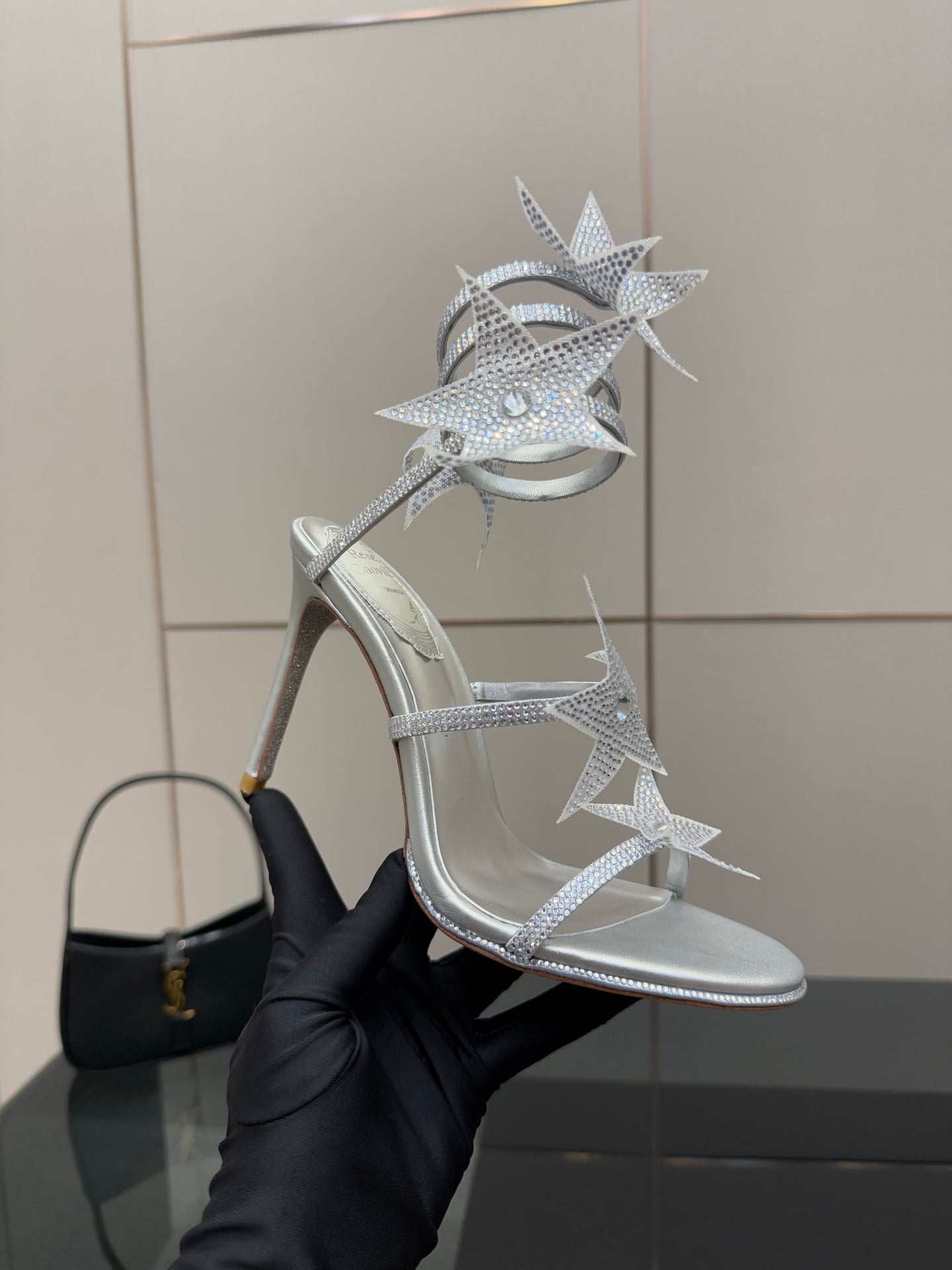 RC Sandals 9.5cm Sliver Rhinestone Silk 302584