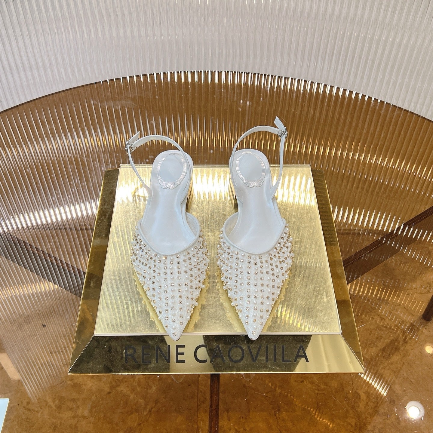 RC Slingback 1cm White Rhinestone Sheepskin 281983