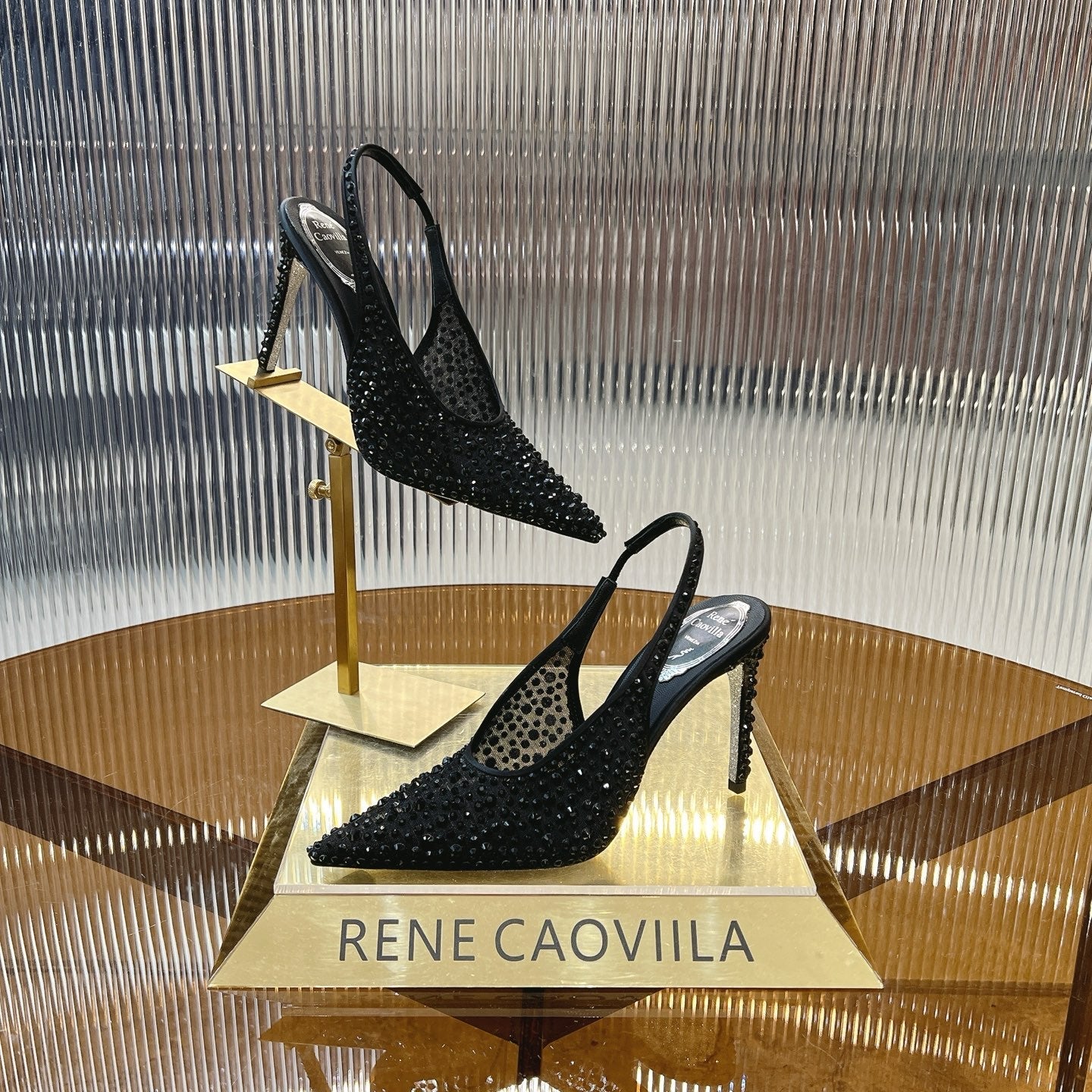 RC Slingback Shoes Black Rhinestone Sheepskin 281981