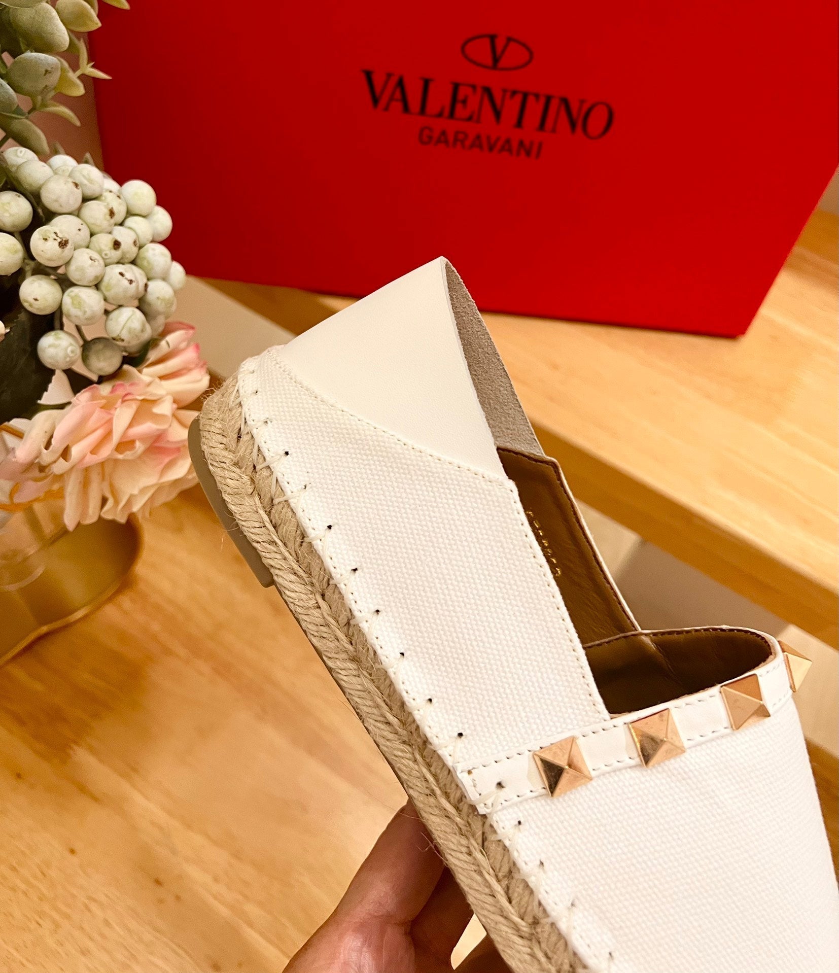 ROCKSTUD WHITE CANVAS ESPADRILLES