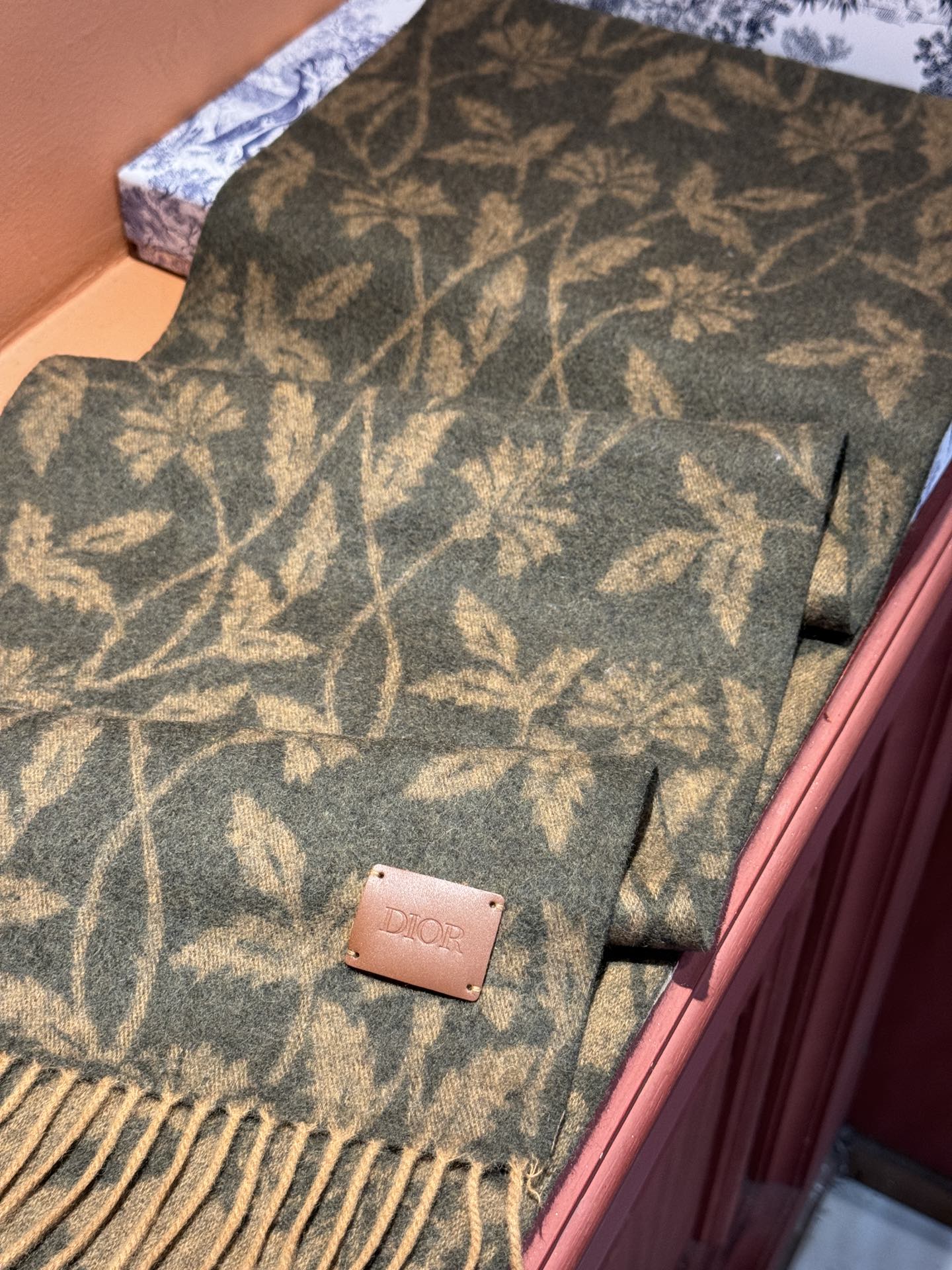 SCARF 180 CM IN OLIVE GREEN MONOGRAM CASHMERE 394642