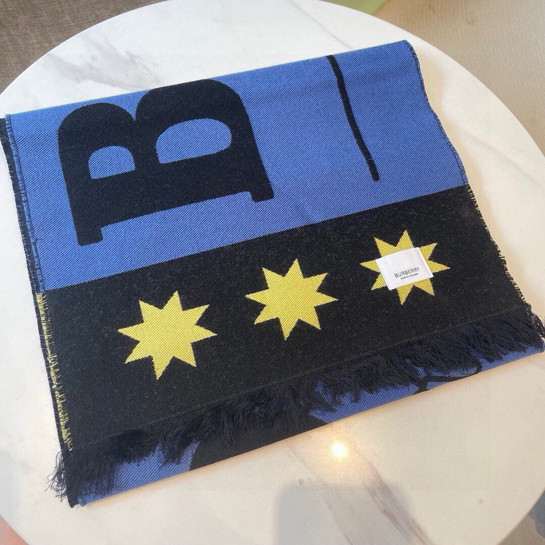 SCARF 200 CM IN COBALT BLUE MIX BLACK CASHMERE 401905