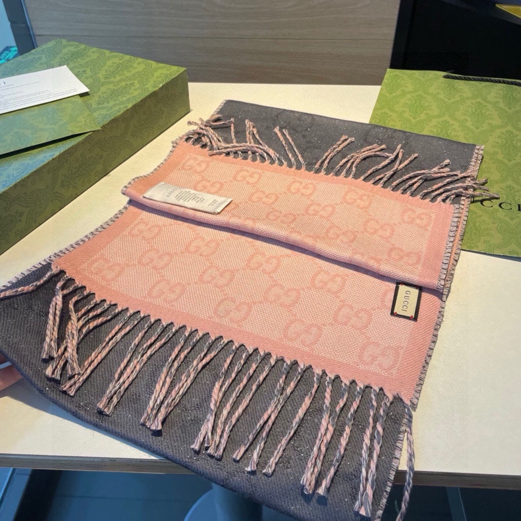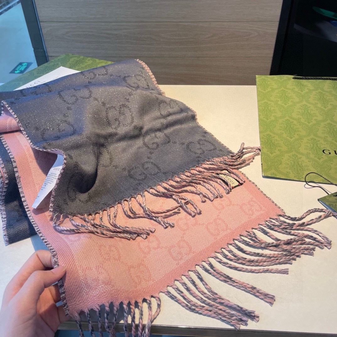 SCARF IN MOUSE GRAY AND LIGHT PINK WOOL 405143