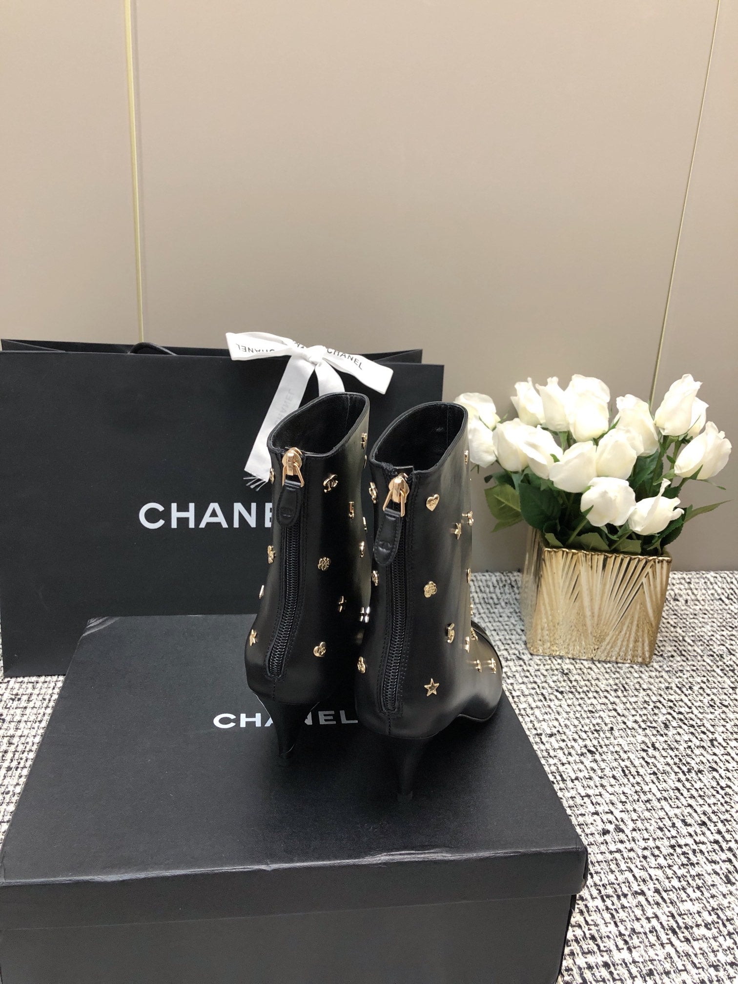 SHORT BOOTS BLACK LAMBSKIN ATTACH METAL