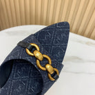 SL CHAIN ATTACH HEELED MULES INDIGO DENIM