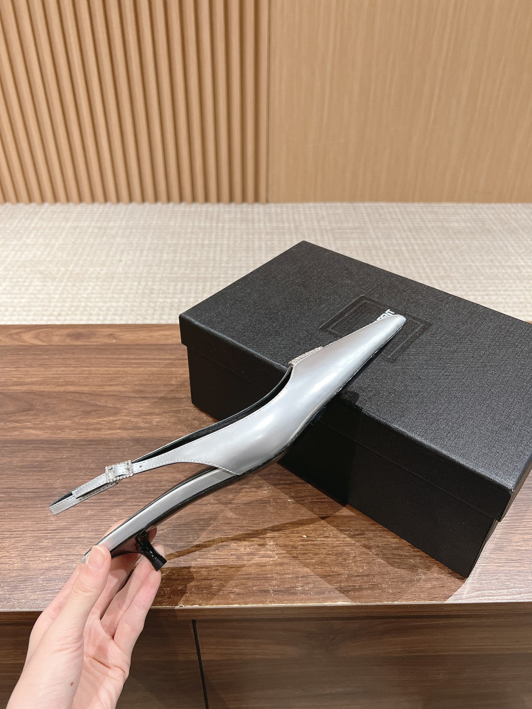 SL CHERISH CRYSTAL SLINGBACK SILVER CALFSKIN