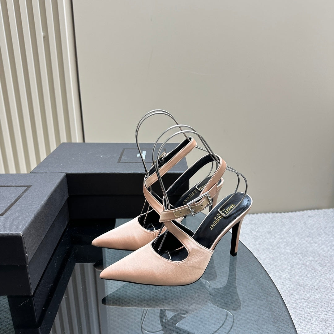SL CROSS-STRAP SLINGBACK PINK NUDE SATIN