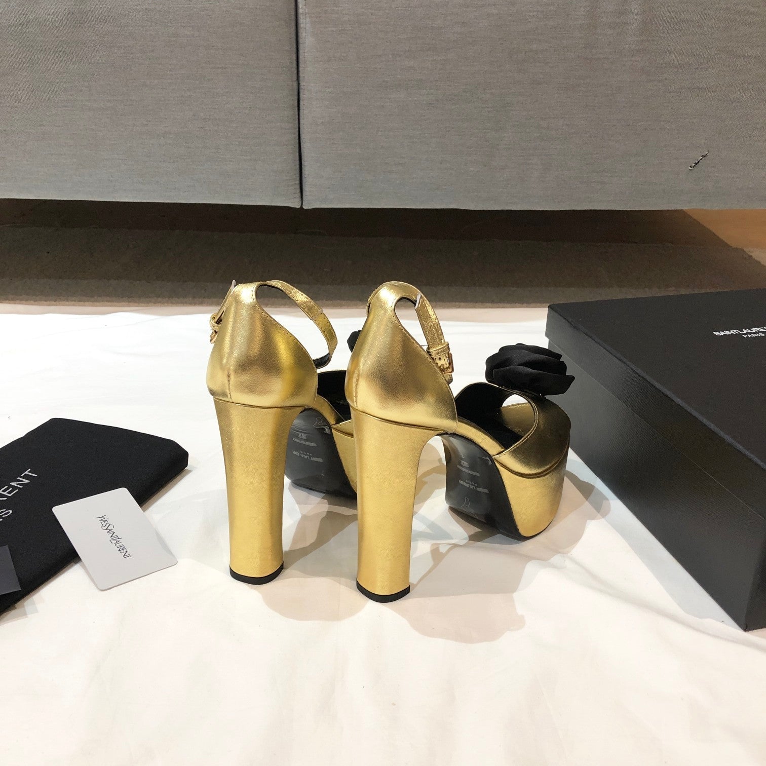 SL IVY FLORAL 135 PLATFORM SANDAL GOLD CALFSKIN